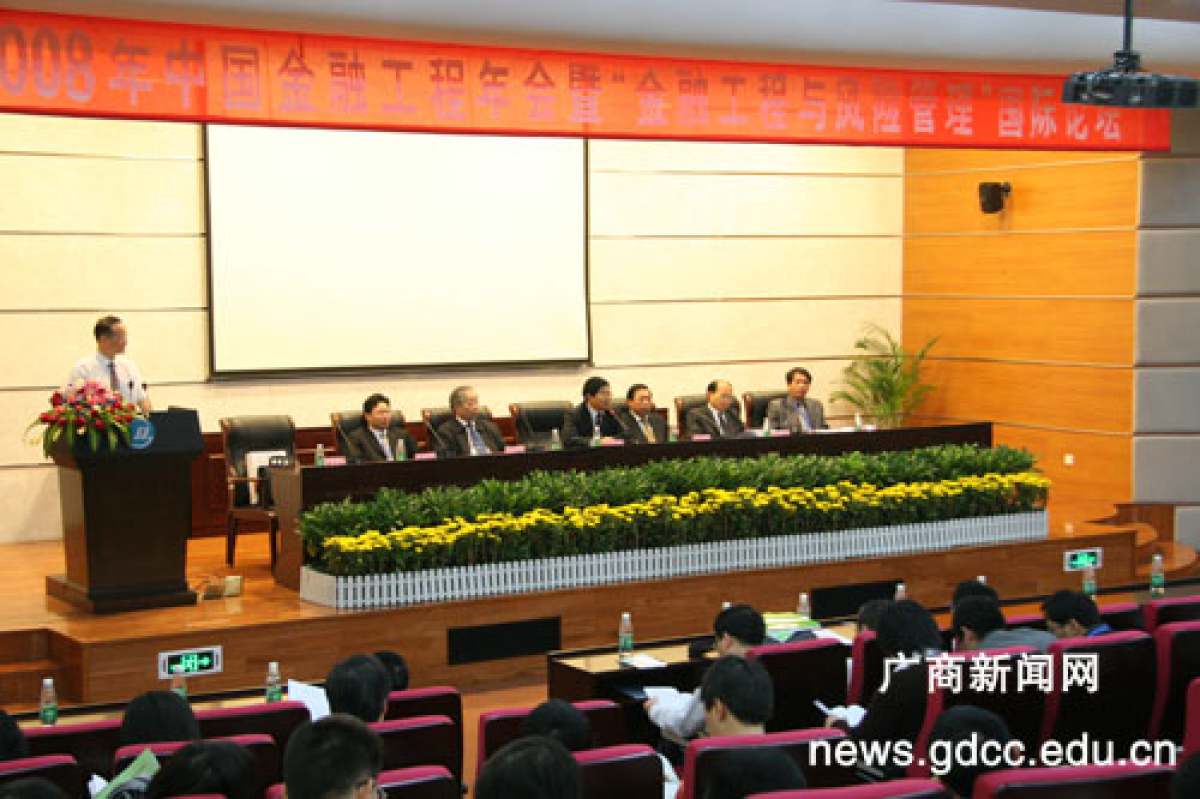 由全面风险管理研究国际组织、广东商学院主办,金融学院承办的2008中国金融工程年会暨金融工程与风险管理国际论坛,于4月12日上午在我院综合楼408报告厅召开。广东省人民政府副秘书长李捍东,广东商学院院长吴家清、副院长雍和明,著名经济学家辽宁大学经济学院白钦先教授、武汉大学经济与管理学院叶永刚教授、上海交通大学安泰管理学院副院长吴冲锋,中国人民大学、南开大学、中南财经政法大学等全国各地近50所高校的专家学者以及港澳台的专家学者120多人参加了此次的金融工程年会。