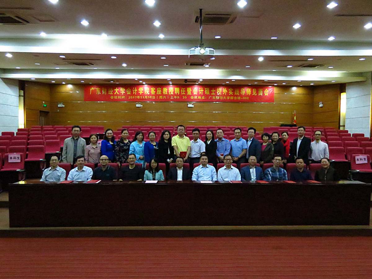 11月18日,广东财经大学会计学院客座教授聘任仪式暨会计硕士校外实践导师见面会在综合楼408举行。校长于海峰、研究生处处长苏武俊、副处长何晓聪、经济与管理实验教学中心主任车嘉丽、会计学院院长刘国常、副院长庄学敏、副院长陈建林、会计学院党委副书记林可、十三位校友客座教授和校外实践导师出席了本次活动。与会人员还有会计学院研究生导师、全体在校研究生和部分本科生。会议由会计学院党委书记文波主持。