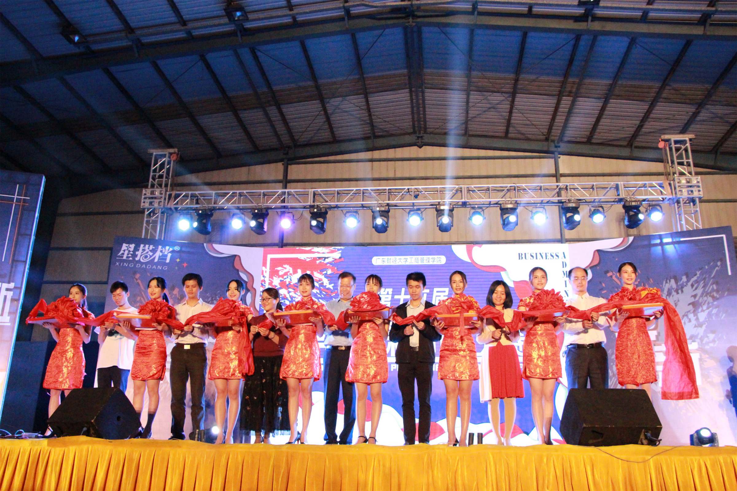 4月10日晚,工商管理学院在佛山三水校区风雨球场举行了第十六届品牌策划推广大赛开幕式晚会。广东拔萃教育集团执行总裁杨立、深圳市羽博电子商务有限公司总裁张春霞,学生处副处长陈发荣、保卫处副处长方彤彤、教务处副处长李伟军、校团委副书记张鹏程,以及工商学院领导班子成员、各企业和品牌公司代表、高管、校友出席本次开幕式晚会。