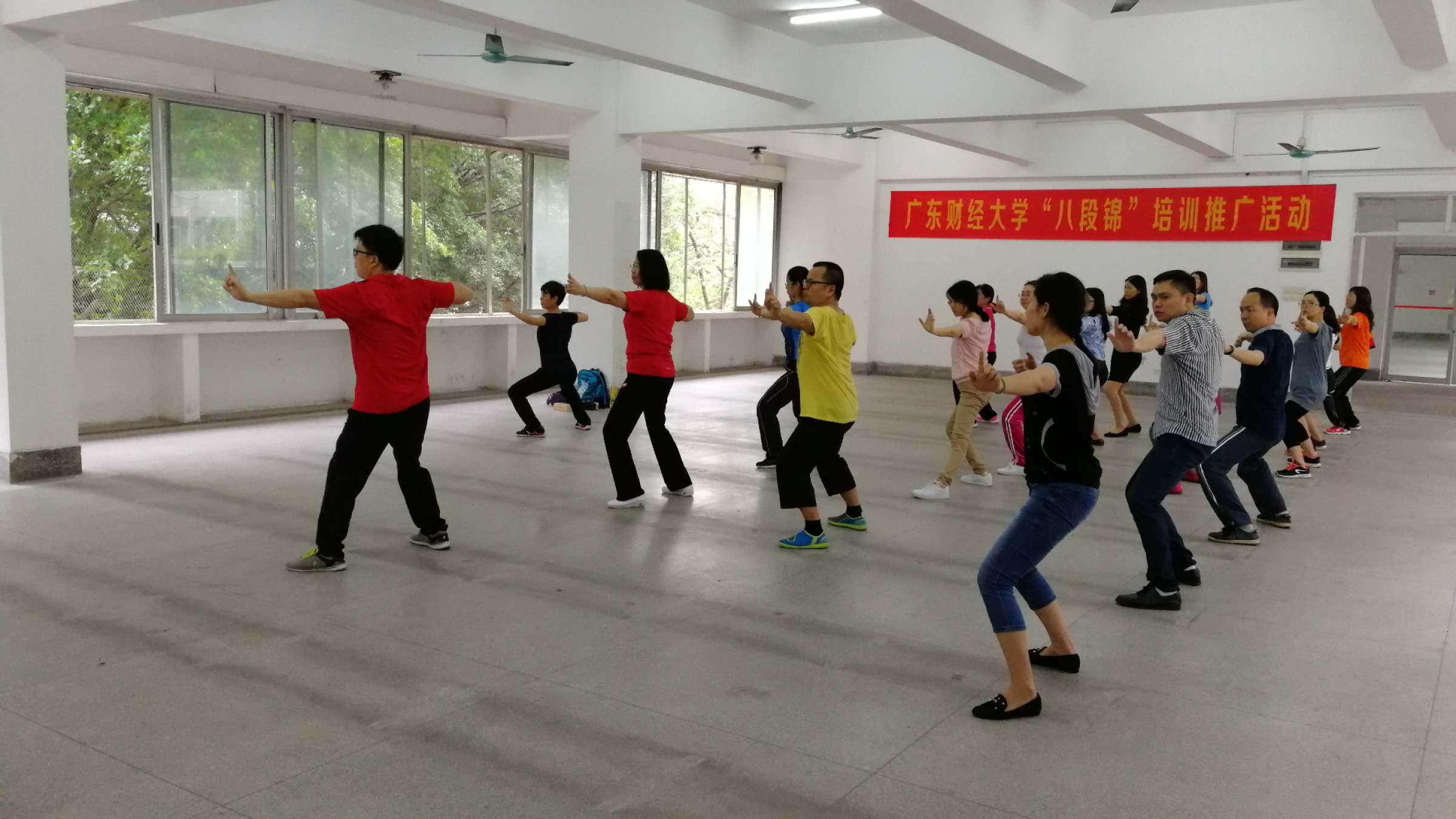 为深入贯彻落实《全民健身计划》,帮助教职工缓解工作和生活压力,提高教职工身体素质和健康水平,校工会于5月8日起在旧图书馆二楼201室开展两期“八段锦”培训推广活动,体育教学部老师陈佩辉担任教练。