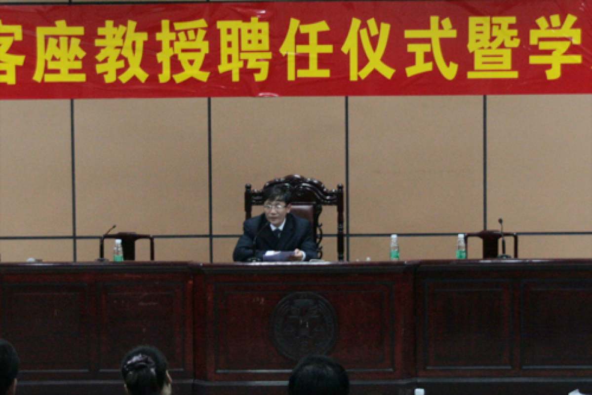 12月8日晚,人文与传播学院在实验楼模拟法庭举行姚斌华客座教授聘任仪式暨学术讲座。人文学院院长涂争鸣为广州市人民政府办公厅新闻信息处处长姚斌华颁发客座教授聘书,副院长马持节等出席仪式。