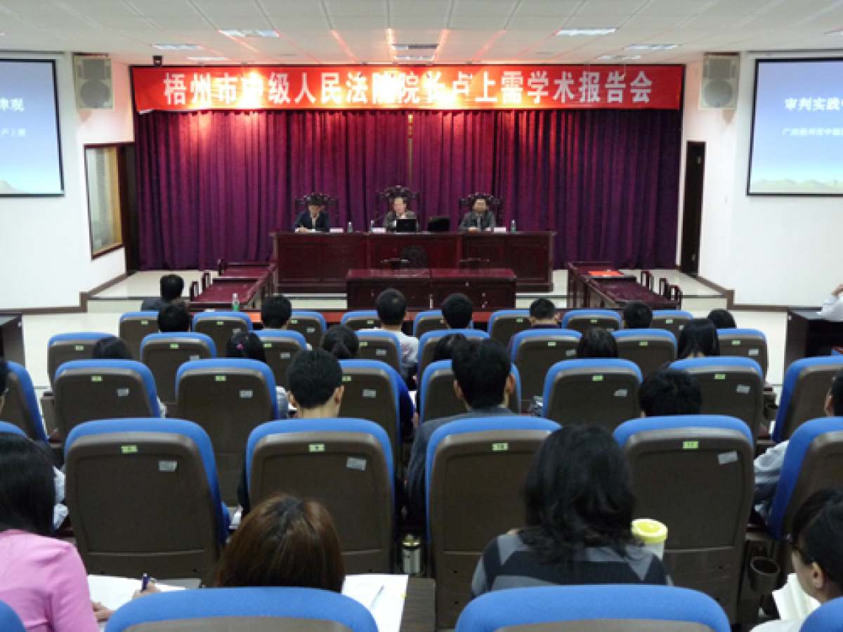 3月29日上午,广西梧州市中级人民法院院长卢上需在模拟法庭作题为“审判实践中的法律观”的学术讲座。法学院副院长彭真军主持讲座。