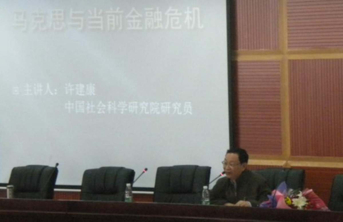 4月9日上午,经济贸易与统计学院与三水校区管委会携手在三水校区图书馆学术报告厅举办了由中国社会科学院研究员许建康主讲的、题为“马克思与当前金融危机”的讲座。经济学院院长叶祥松主持讲座,教授晏宗新出席并点评讲座。