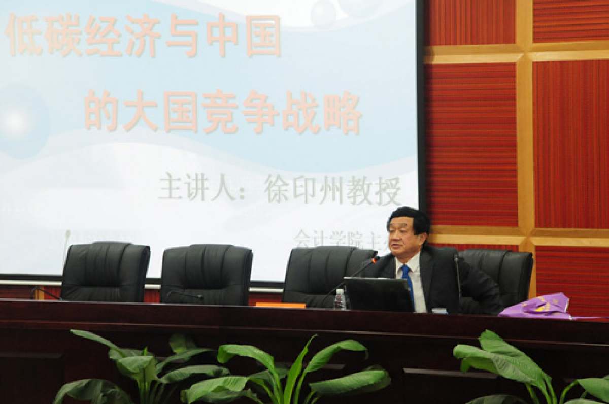 4月16日,原广东商学院副校长、中国商业经济学会副会长、广东商业经济学会会长徐印州在三水校区学术报告厅为我校师生作 “低碳经济与中国的大国竞争战略”讲座。