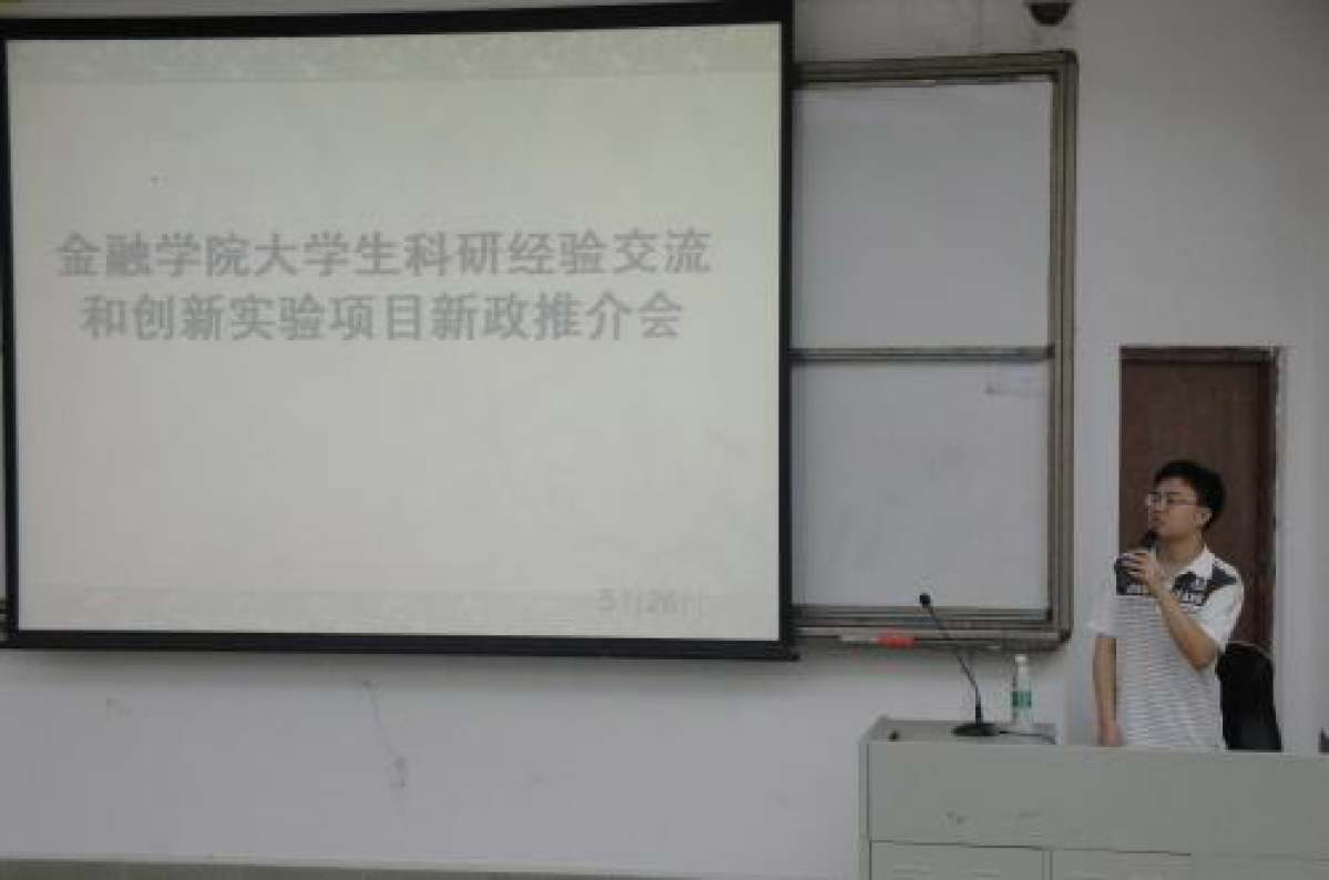 5月26日晚,金融学院在三水校区举行大学生科研经验交流和创新实验项目新政推荐会。金融学院党总支书记黄正新在会上解读了国家大学生创新实验项目的有关文件精神。在“挑战杯”竞赛中获奖的高年级同学应邀与大家进行交流。