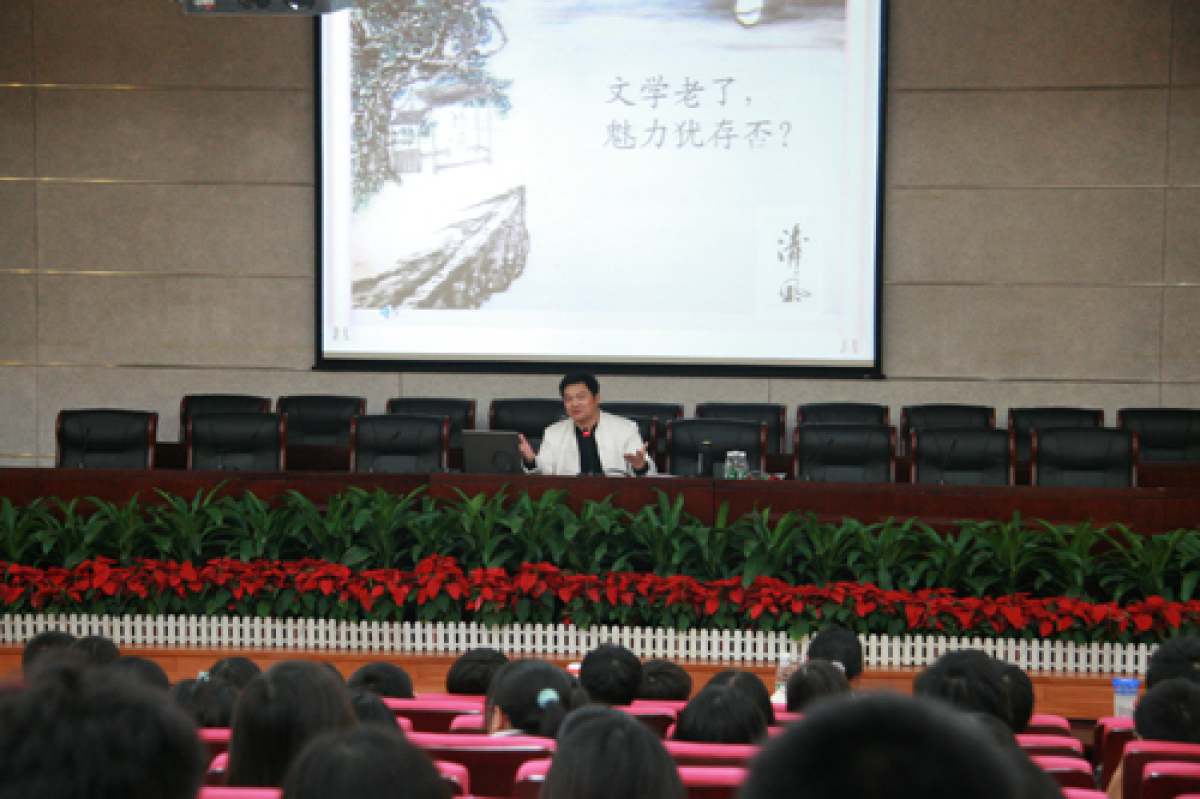 “我宁愿老去,但文学未老。”11月30日,人文与传播学院教师刘俊峰(字清风)以这句开场白,开始了在综合楼408举行的图书馆雅风论坛之“文学老了,魅力犹存否?”的讲座。