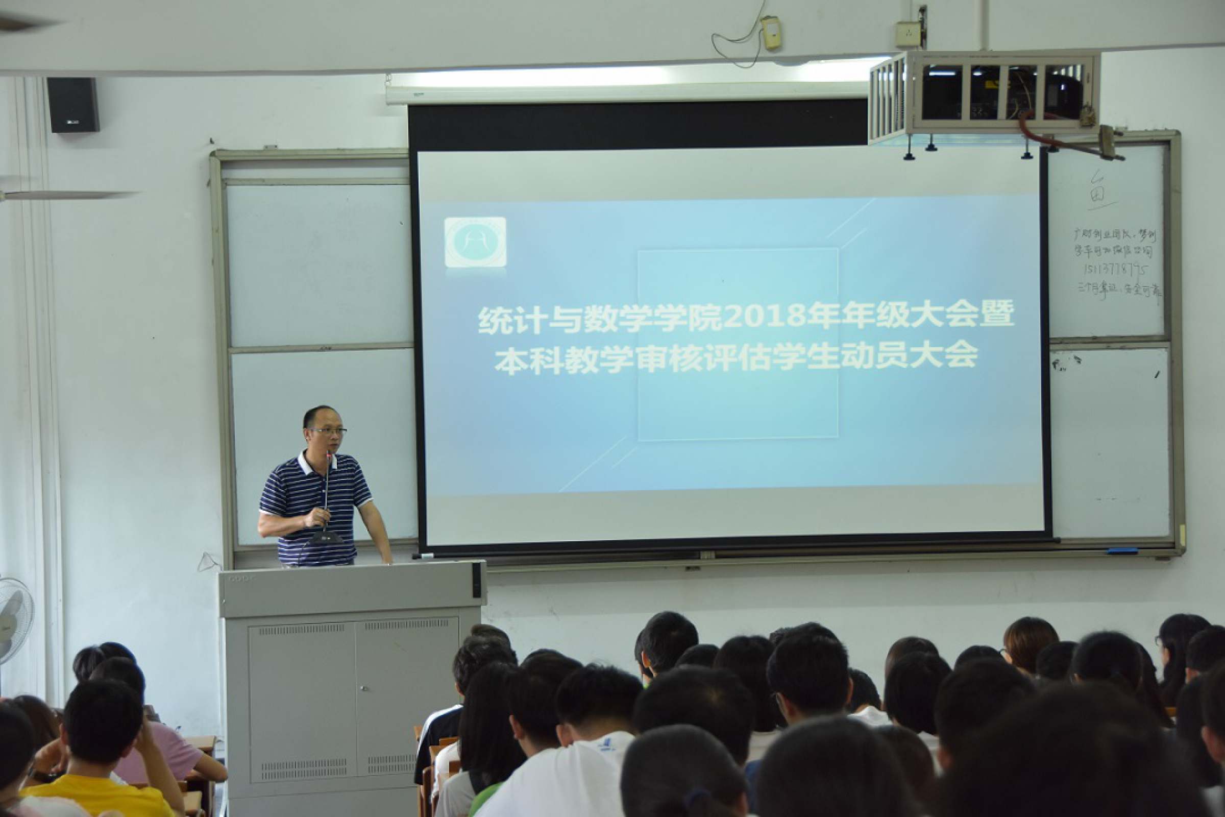9月18日、25日下午,统计与数学学院分别在广州校区、三水校区召开迎接本科教学审核评估学生动员大会,副院长黄辉、党委副书记李恩华分别作动员。