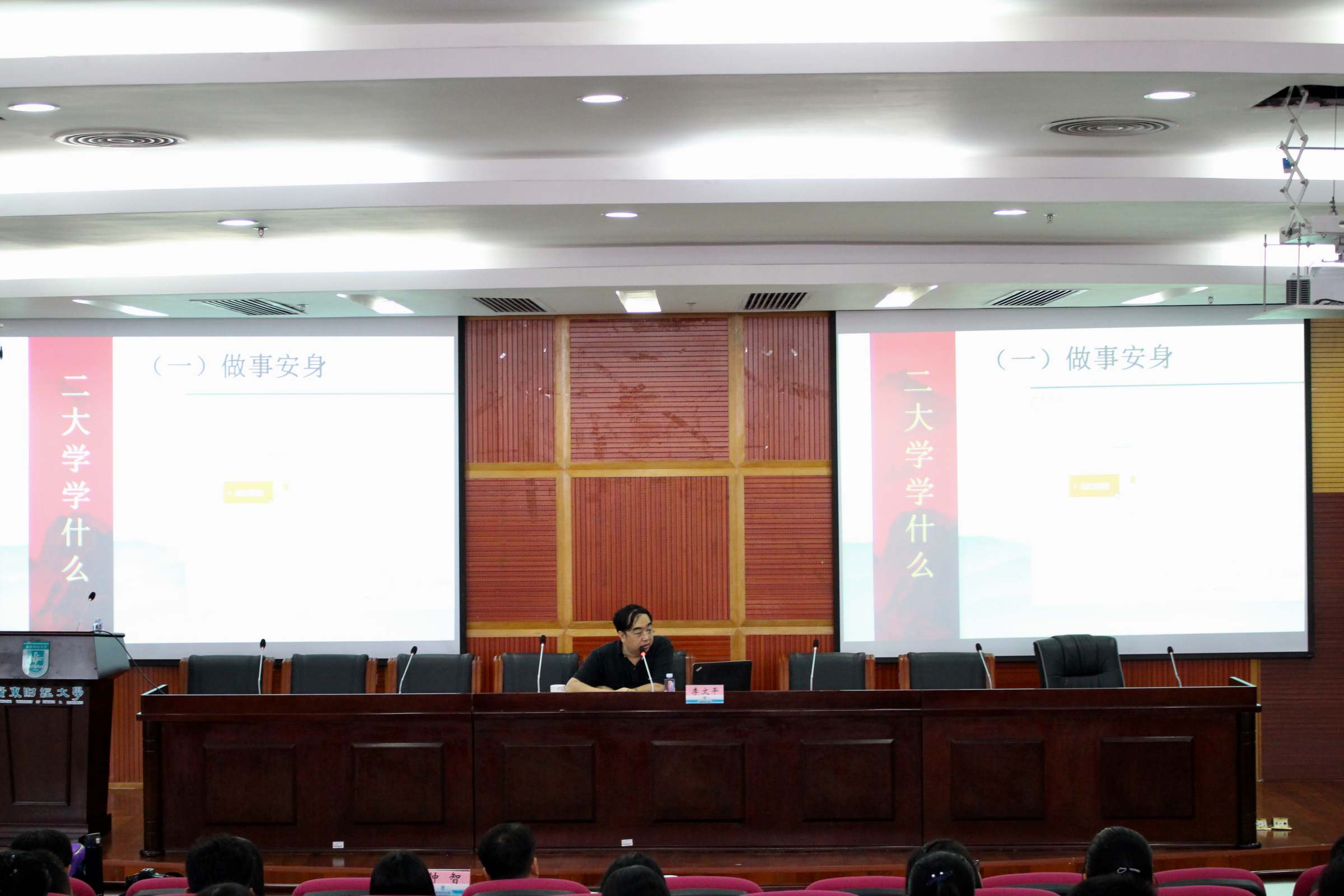 李文平用一句“三五年前的你决定了现在的自己,现在的你也极有可能决定三五年后的自己”,引入有关大学生活和个人成长的话题、并从“为啥上大学”、“大学学什么”和“大学怎么学”三方面展开。
