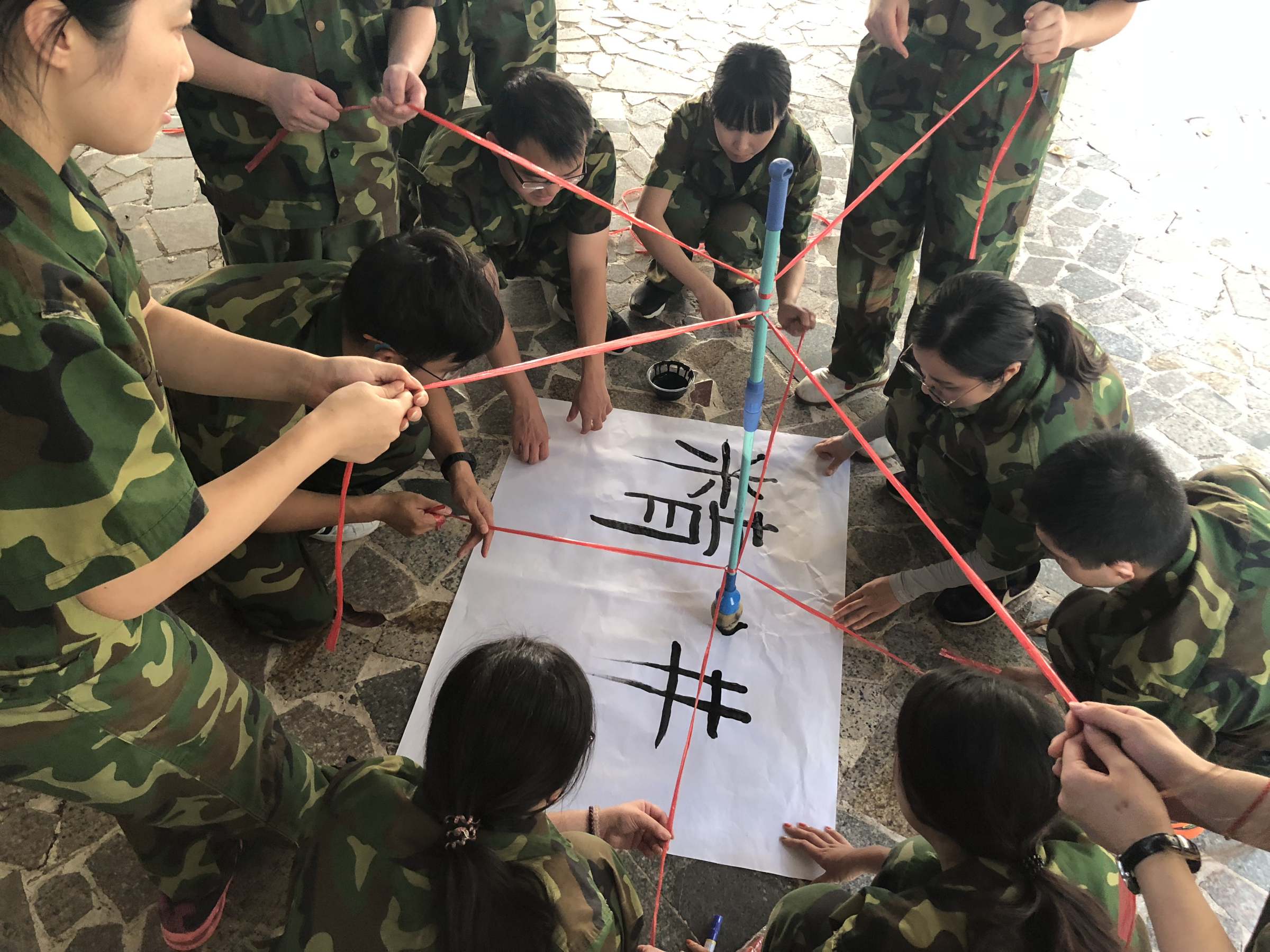 在教练“1、2、3、……”口令的指挥下,来自不同部门、不同学院的教职工迅速组建成4支队伍。经过队员们的头脑风暴,一个个响亮的队名、口号和各具特色的队旗一一亮相,拉开了拓展活动的序幕。活动过程中,大家听从指挥,克服困难,齐心协力,大胆挑战。队员们相互加油、相互鼓励,完成了挑战NO.1、沙场点兵、罗马炮架、神笔马良等颇具挑战性的项目。项目结束后,4支队伍分别总结并分享了对整个活动的感受与体会——缘分、信强、精进、真棒。寓意是:“缘分”令我们聚集在一起,我们“信念坚定、顽强拼搏”,充分体现了“精诚团结、积极进取”的精神,圆满完成任务,表现“真棒”。