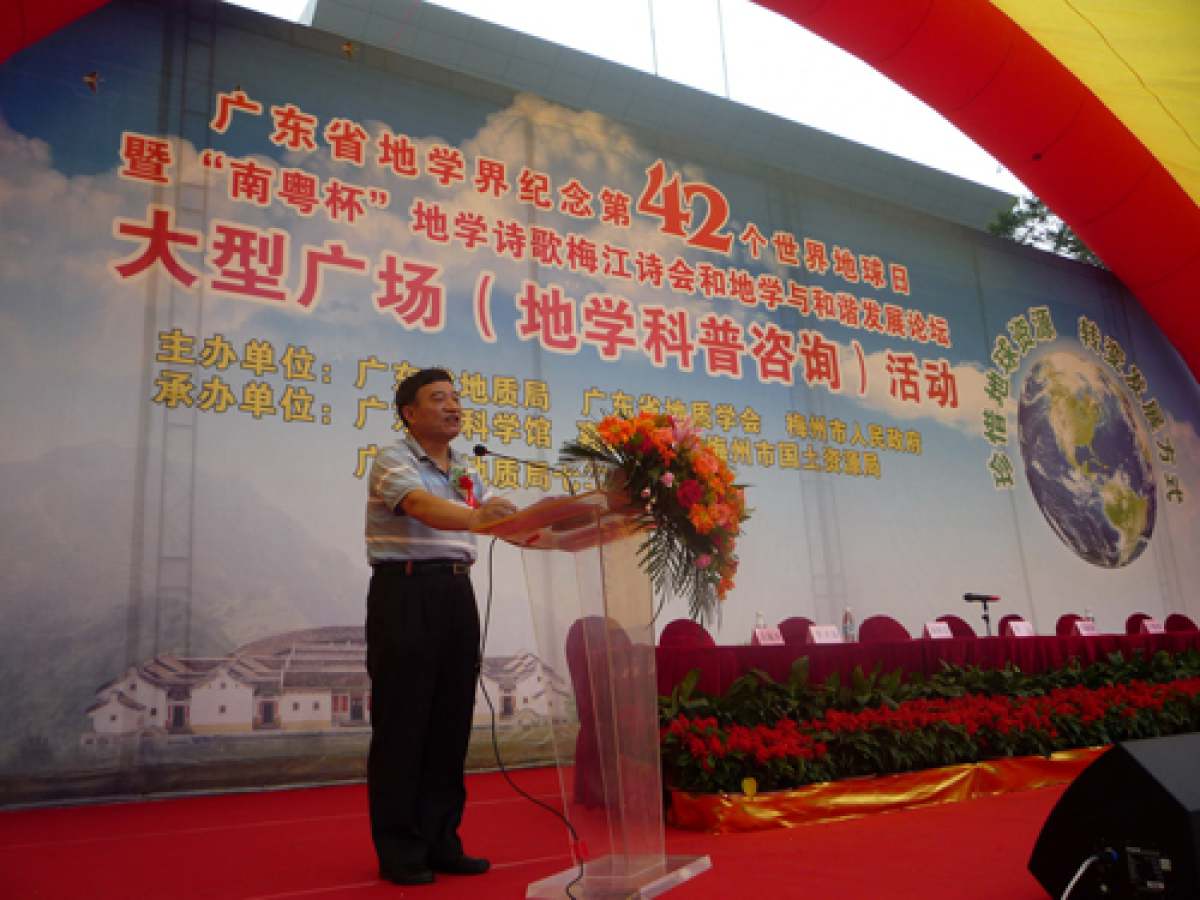 4月17日上午,广东省地学界纪念第 42个“世界地球日”暨“南粤杯”地学诗歌梅江诗会和“地学与和谐发展”论坛大型广场活动在嘉应学院举行。我校资环学院地质遗迹研究中心主任李春生结合活动主题,现场作《地质遗迹资源的保护与开发》报告,并接受了有关新闻媒体的采访。