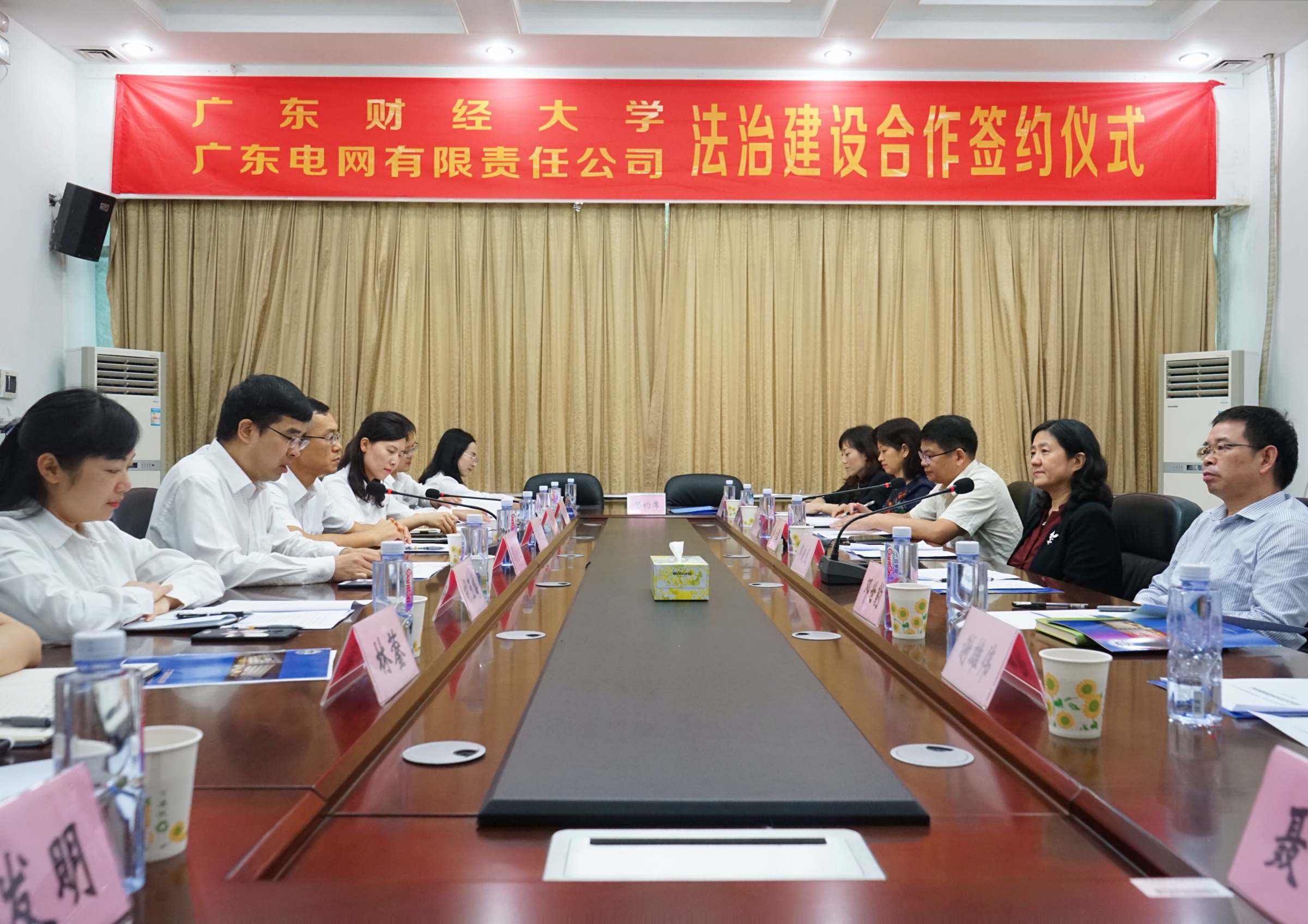 11月7日下午,广东财经大学与广东电网有限责任公司法治建设合作签约仪式在广州校区实验楼211举行。广东电网公司董事、副总经理、总法律顾问贺金生,法律部主任孙世光,法律服务中心主任胡玉梅,广东财经大学副校长邹新月,法学院院长房文翠,科研处处长邓世豹等出席签约仪式。仪式由房文翠主持。