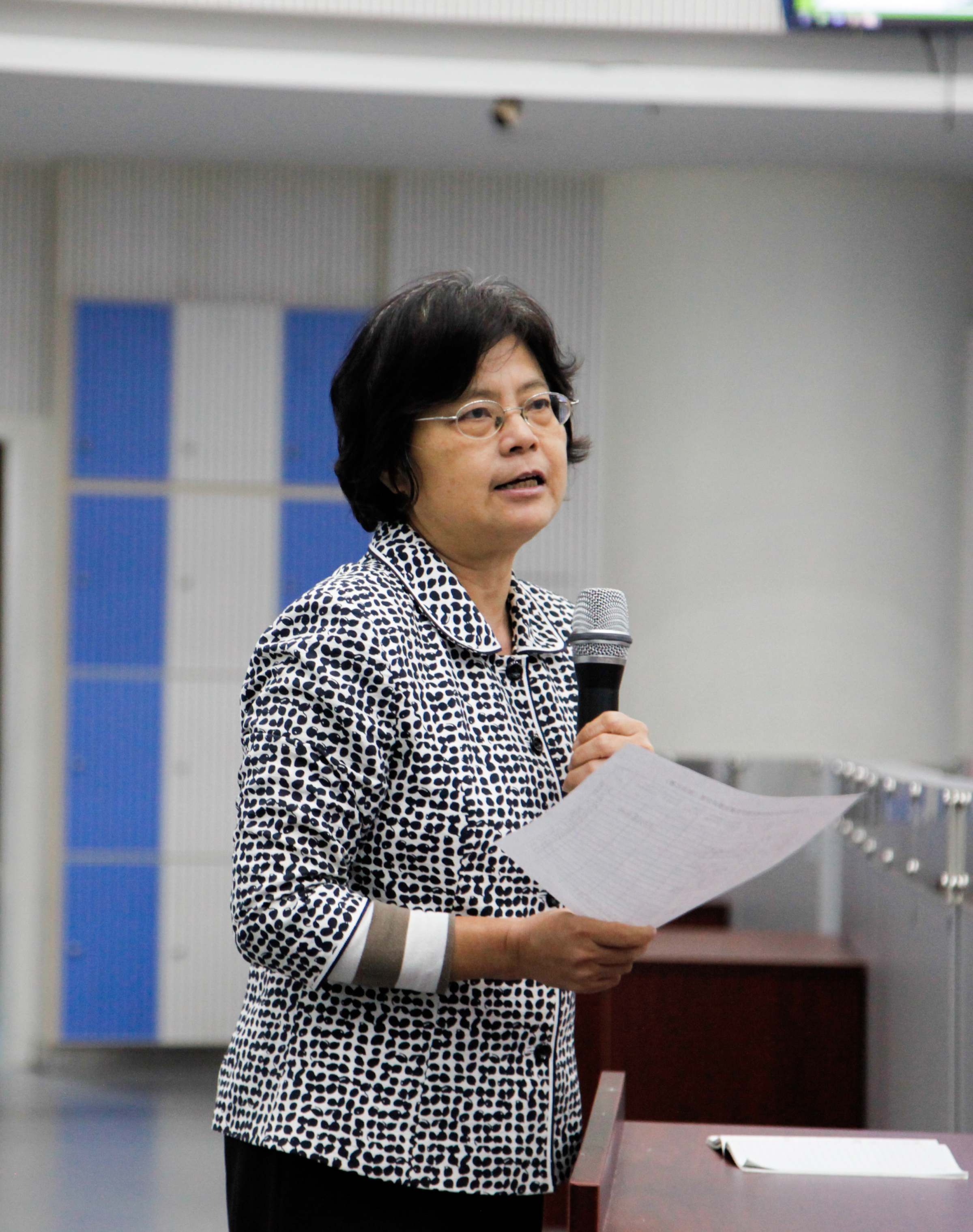 张世君对演讲比赛进行点评。她对我校20青年教师充满激情的演讲予以赞赏。她通过对演讲内容、礼仪、着装以及口语频词等分析指出了教师们演讲中的优点与不足,并对教师们的教学提出了意见和建议。
