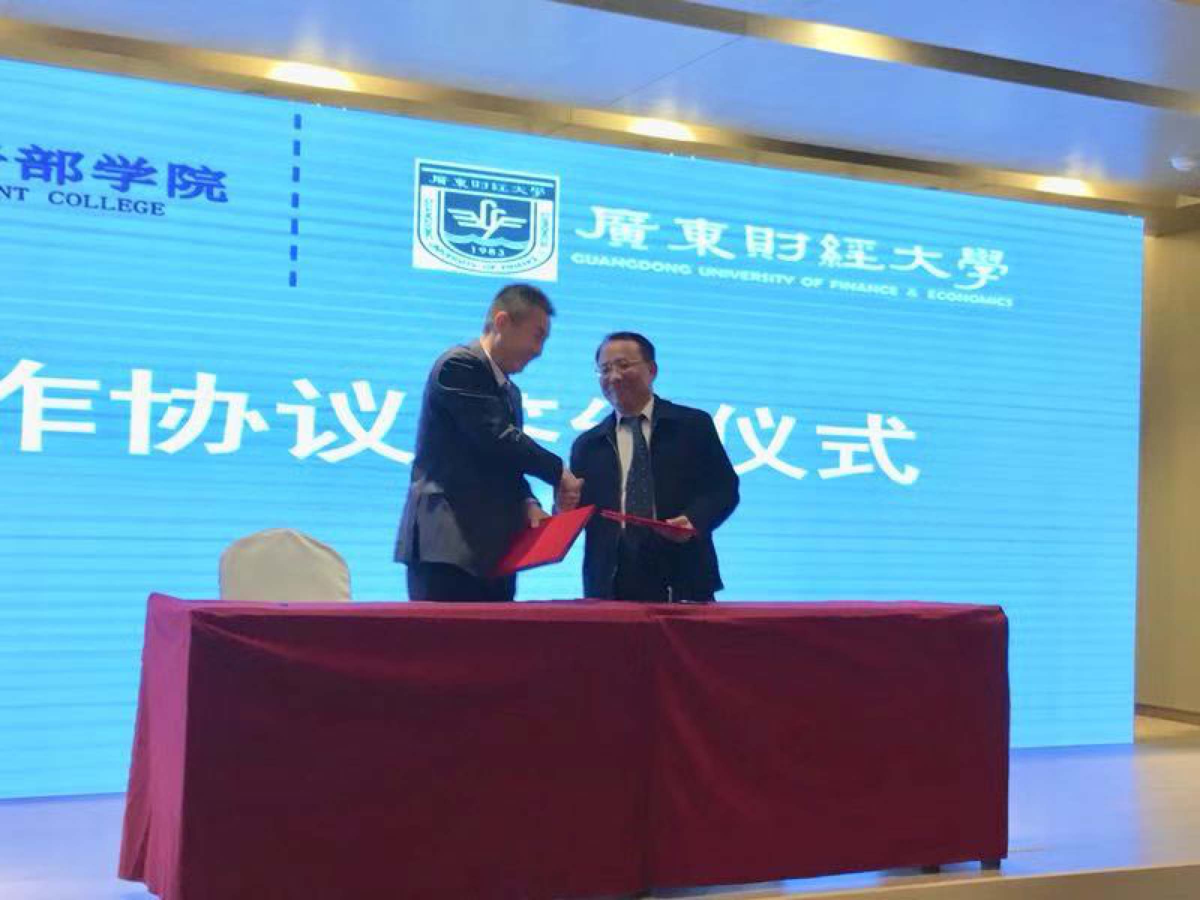 为更好服务乡村振兴战略,共同推进我国农产品流通发展,12月3日,广东财经大学与北京商业管理干部学院“合作框架协议”签约仪式在北京举行。我校校长于海峰与北京商业管理干部学院院长曾锋分别代表双方签署协议。会议还同时举行了北京商业管理干部学院中国农产品流通研究院成立启动仪式。于海峰获聘为研究院第一批专家委员会委员,并和其他领导一同为基地启动按钮。仪式由北京商业管理干部学院副院长黎少华主持,北京商业管理干部学院党委学院书记黄道新及双方学校相关职能部门负责人出席了签约仪式和揭牌仪式。