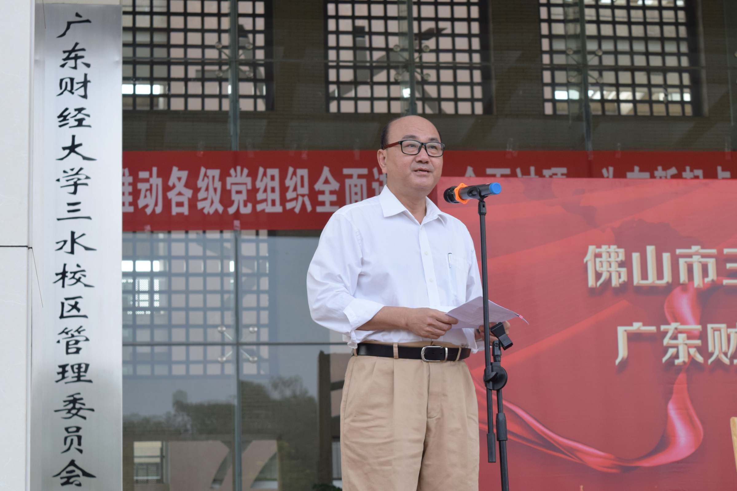 黄晓波讲话。他简单介绍了我校的建校情况以及与佛山市的合作情况,回顾了近年来我校在广东发展和粤港澳大湾区中所作出的努力和贡献。他指出,教育培训基地的成立,不仅进一步加强了校地合作,为学校服务地方经济社会发展提供了新的平台,也为三水区整合资源、提高干部(人才)培养质量创造了优质的条件;同时还有利于发挥学校人才聚集优势、开展产学研合作。他希望校地双方在今后的基地共建中能够发挥各自优势,加强合作,把教育基地打造成高水平的人才培育平台。