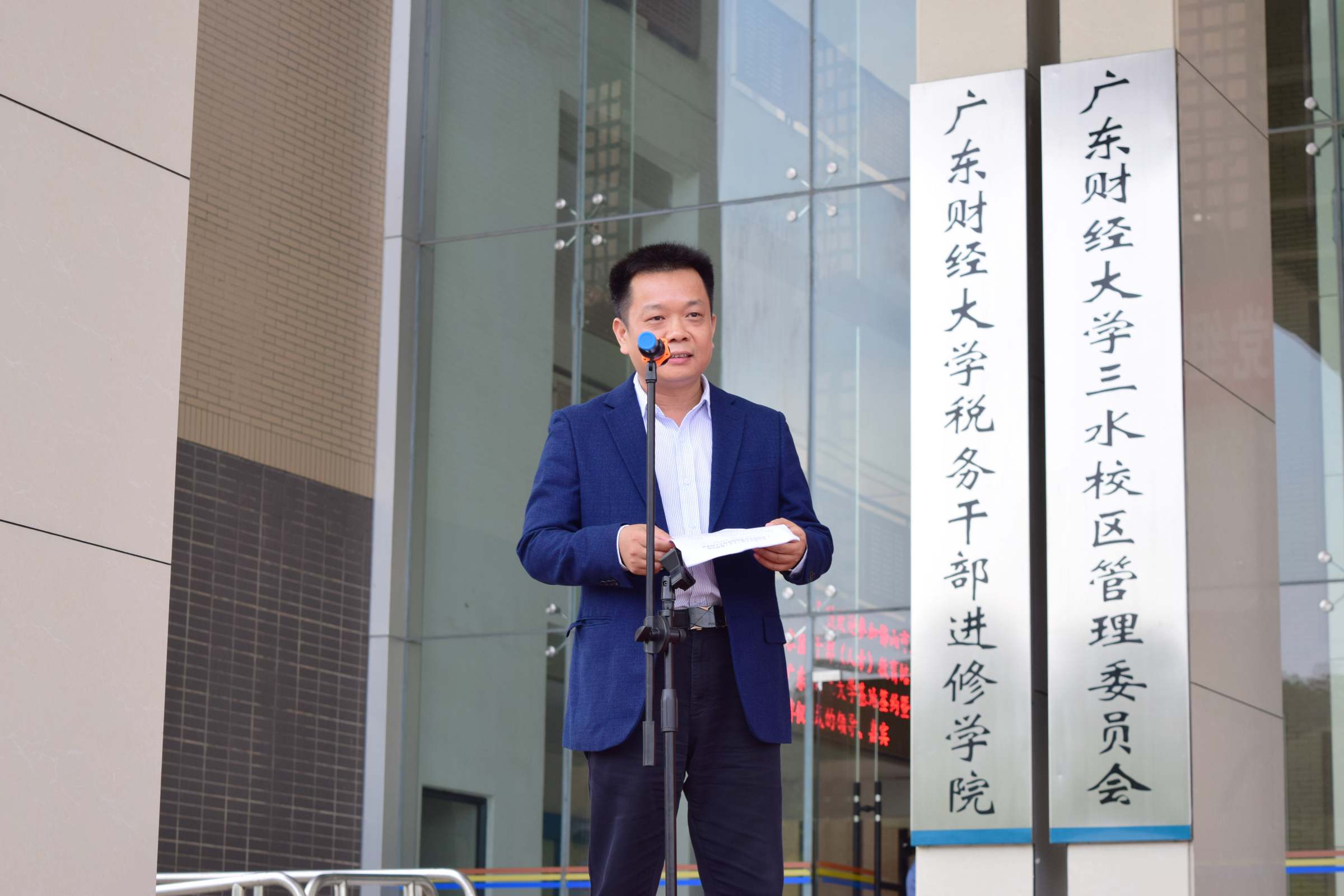 廖义斌在讲话中提到,三水区正处于全面融入粤港澳大湾区建设的关键期,干部(人才)综合素质和专业能力都急需提高。广东财经大学自建校以来培养了大量高层次复合型人才,为广东经济的快速发展做出了重要贡献。他希望以共建基地为契机,借助我校在教育资源等方面的优势来帮助三水区干部制定中长期的培训规划,提供有效的智力支持。