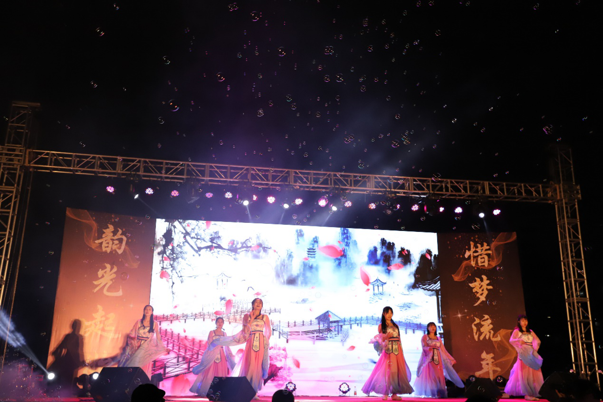 晚会在主持人的精彩开场中拉开序幕。超燃的《Rumors》开场舞调动了全场的气氛,超炸的《Remember》街舞表演更是将晚会推向高潮;舞蹈《浪人琵琶》诉说着柔情,将我们代入到古风中,体会江湖韵味;滔滔黄河,奔腾东去,日月经纬,孕育华章,《大漠敦煌》诗朗诵让我们一同走进祖国的大西北,采撷人类文化长河的粒粒珠玑,聆听来自血脉深处的声音;航空班学生的《制服秀》为我们带来一场视觉盛宴;《攀登》、《meiyou》、《残酷月光》、《成都》、《姬和不如》等展现了学生的好嗓音。另外,好玩的抽奖游戏更是受到了大家的欢迎,全场气氛长时间达到高潮。