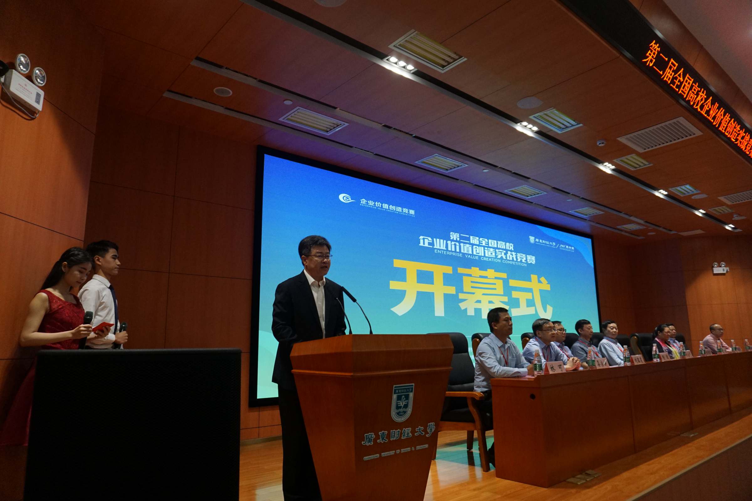 刘永泽代表赛事主办方致辞。他指出会计专业的发展面临着诸多的困难和挑战,需要不断深化创新创业教育改革,提升学生综合素质,推进现代化信息技术与教育的深度融合,加强实践育人平台建设,改革教学管理制度,鼓励学生参加社会实践、科学研究、创新创业、竞赛活动。因此教育部会计专业教学指导委员会启动了“第二届全国高校企业价值创造实战竞赛”,希望大家充分利用这次比赛的机会,探索会计专业教育未来的发展之路。
