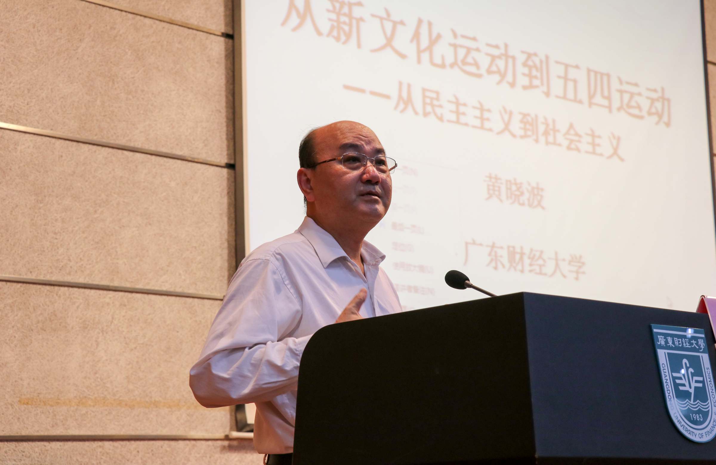 黄晓波在授课中号召青年师生发扬“五四精神”,把学习作为一种责任、一种精神追求、一种生活方式,坚定理想信念,担负起自己肩上的责任,在建设“富强、民主、文明、和谐、美丽”的社会主义强国的事业中,奉献奋斗的青春、无悔的青春。