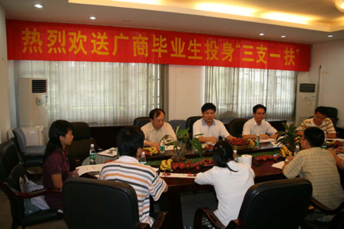 7月6日我院在学工部会议室热烈欢送07届毕业生投身“三支一扶”。院党委副书记马明华,学工部、法学院、财税学院、人文学院、旅游学院负责同志参加了欢送会。