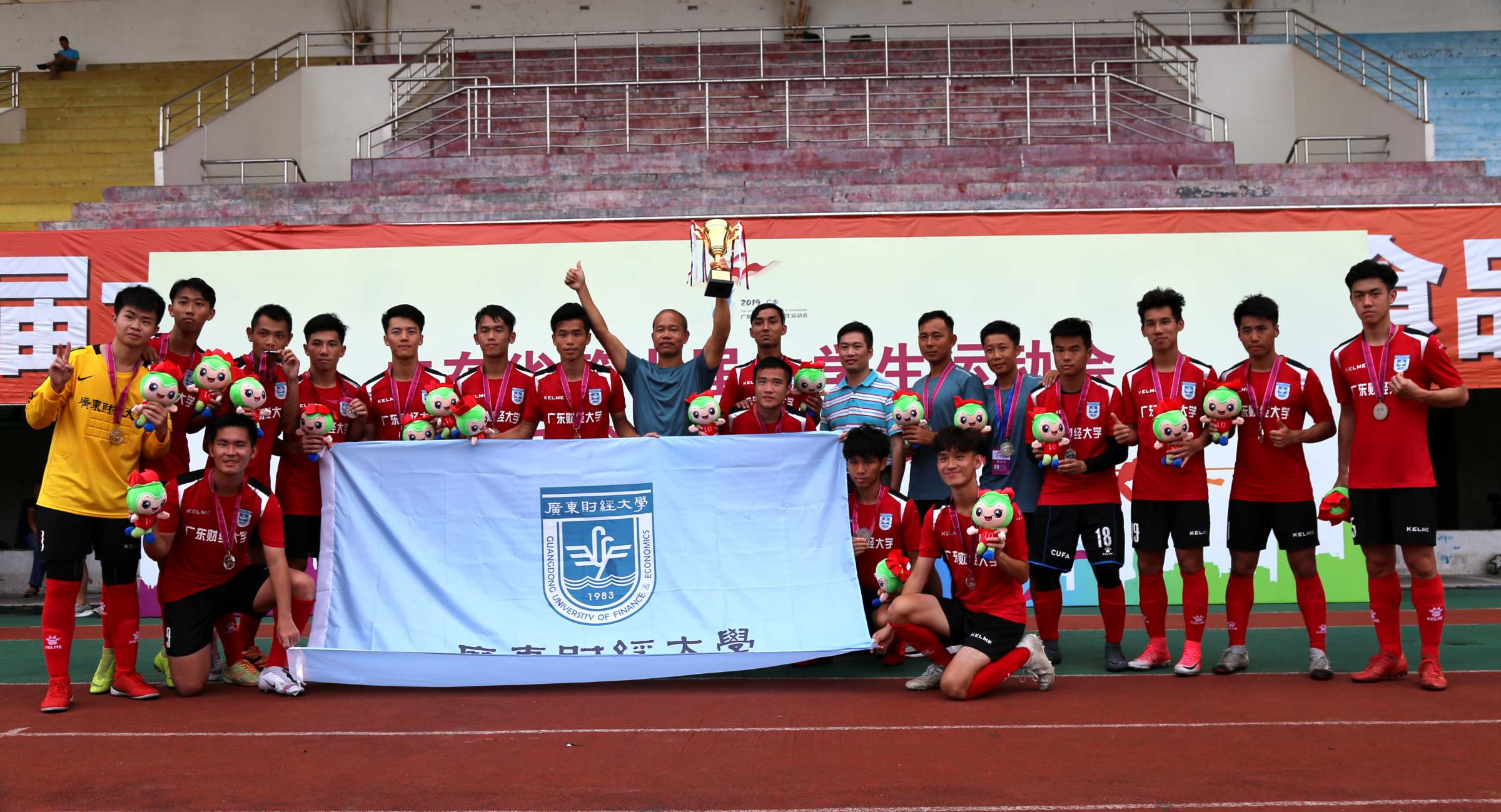 5月27日下午,广东省第十届大学生运动会男子足球甲组决赛在华南农业大学泰山球场举行。我校和广东工业大学展开对决,以0:5不敌广工队,获得亚军,这是我校男子足球队在省大运会上取得的最好成绩。副校长杜承铭亲临赛场督战鼓劲,学校也组织了呐喊助威球迷团为我校队员助威。