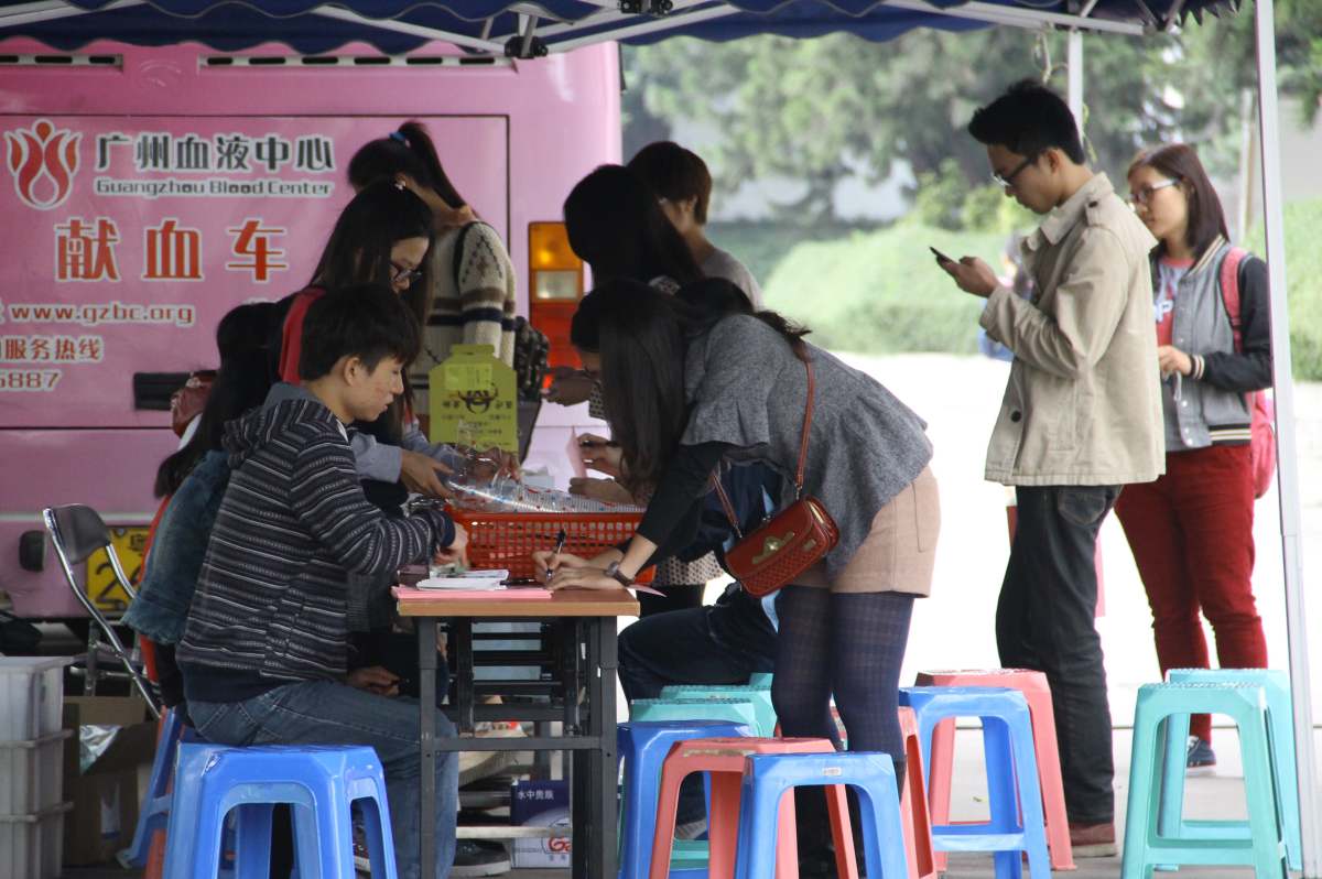 11月18日至19日,我校红十字会联手广州市血液中心在广州校区举行“爱心献血”活动。此活动为期两天,共有200多名师生参与无偿献血。