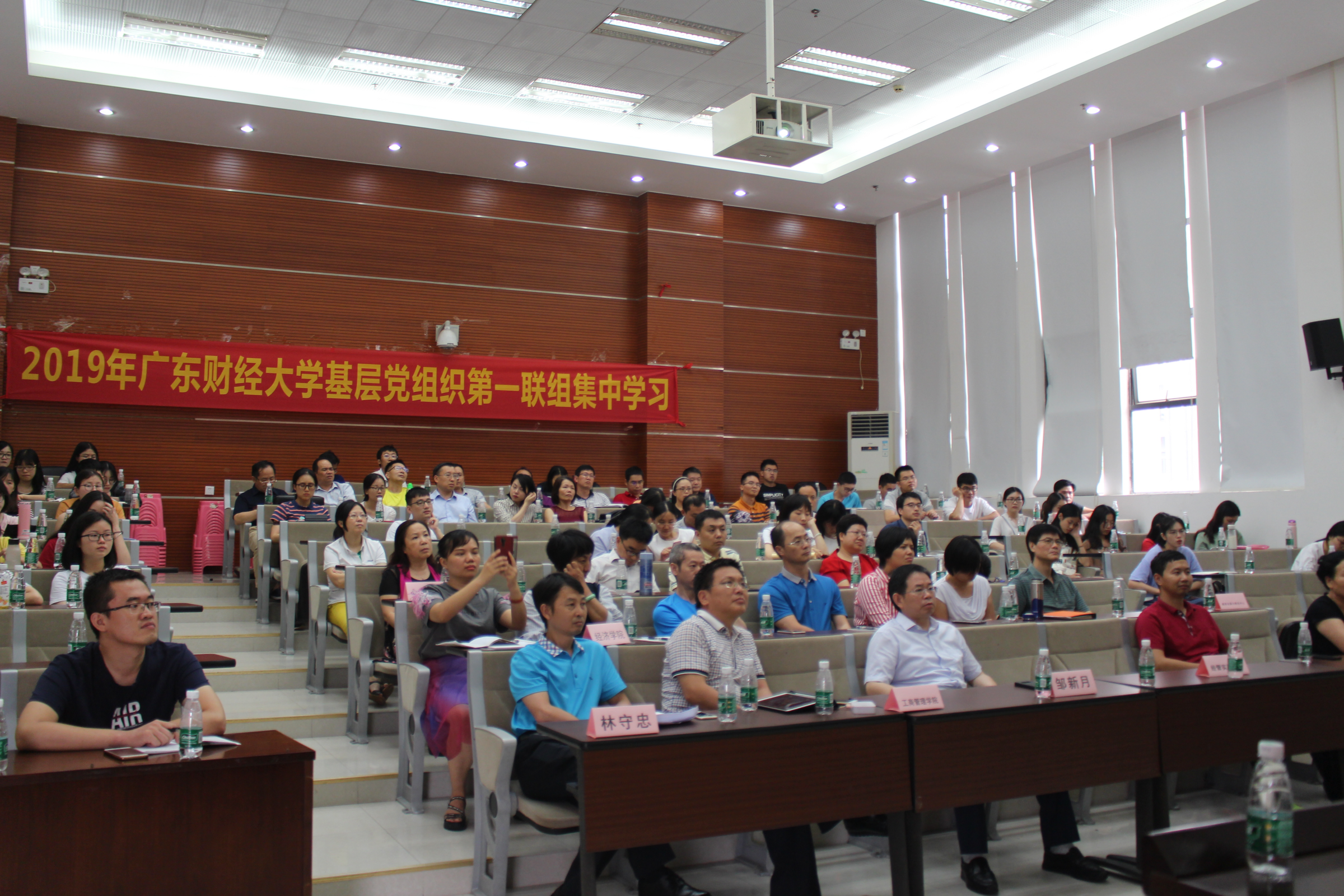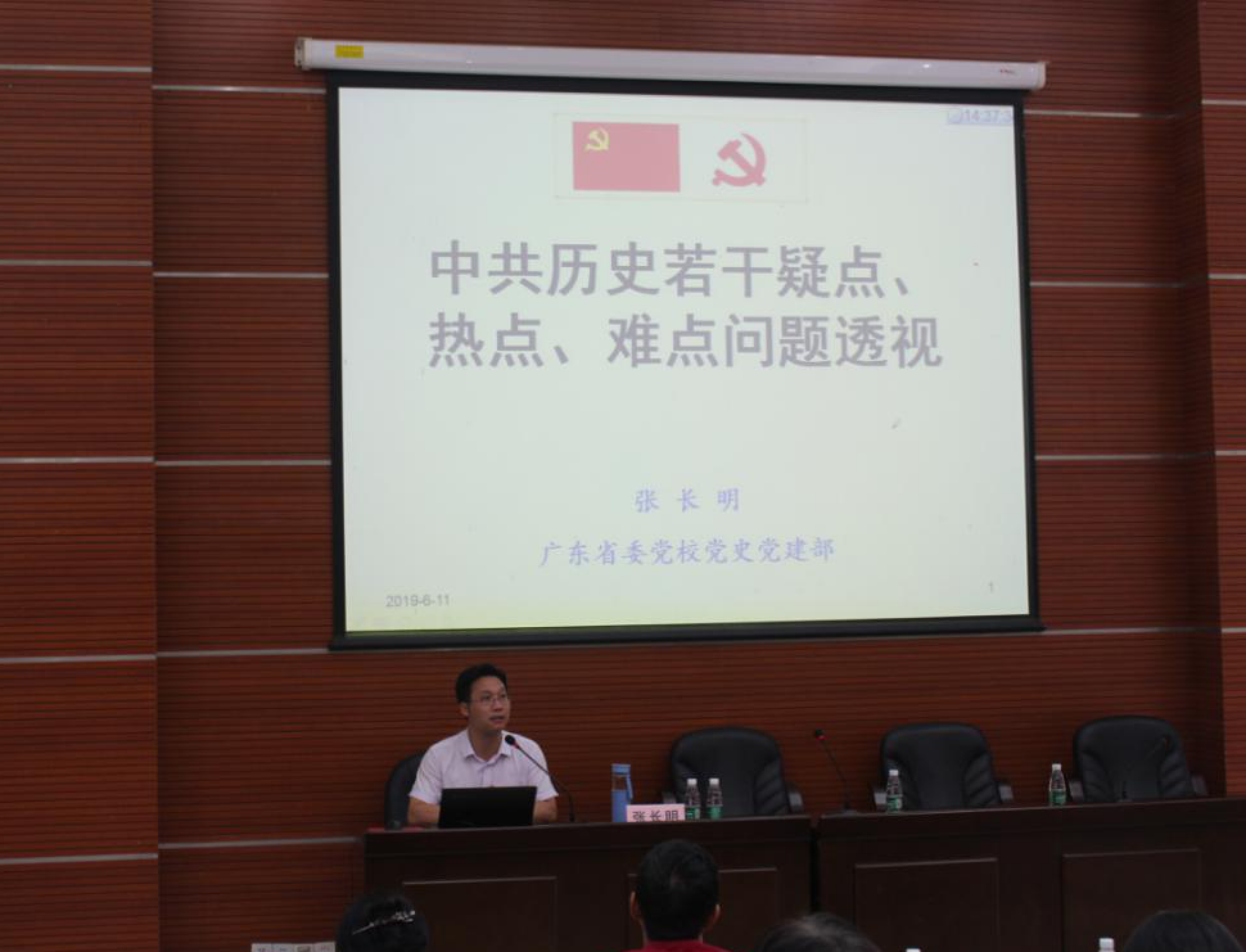 6月11日下午,由金融学院党委召集,学校基层党组织第一联组成员经济学院党委、工商管理学院党委、公共管理学院党委、教师发展与教育技术中心直属党支部、经济与管理实验教学中心直属党支部中心组成员,金融学院全体教工党员,以及2019年上半年新接收预备党员和转正党员等,共计100余名师生党员在北三103进行集中学习。广东省委党校党史党建部张长明副教授主讲,主题是“中共历史若干疑点热点难点问题透视”。副校长邹新月出席本次学习会,会议由金融学院党委书记林守忠主持。