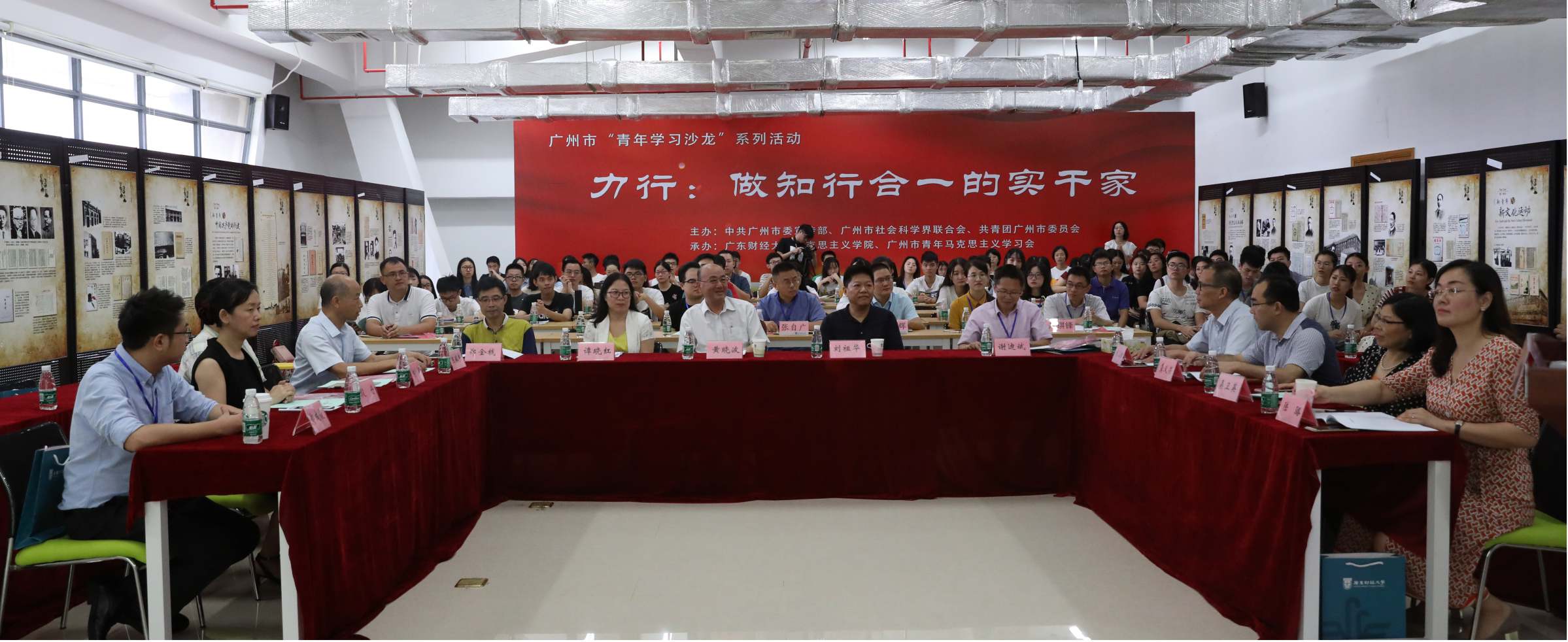 6月18日,由中共广州市委宣传部、广州市社会科学界联合会、共青团广州市委员会主办,广东财经大学马克思主义学院、广州青年马克思主义学习会承办的青年学习沙龙系列活动——“力行:做知行合一的实干家”青年学习沙龙在我校广州校区图书馆801室举行。校党委书记黄晓波、校党委副书记刘祖华、广州市社科联专职副主席谭晓红出席,来自中山大学、华南理工大学、广东外语外贸大学、武汉理工大学等高校专家、青年学者和广东财经大学马克思主义学院师生120余人参加了活动。我校马克思主义学院院长杜奋根主持开幕式。