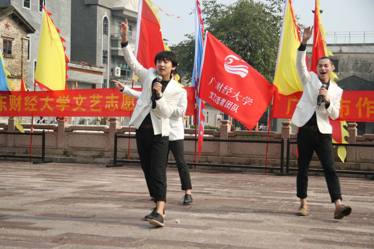 4月3日下午,我校文艺志愿者团队在广州番禺区沙湾古镇举办了一场文艺志愿服务汇演,吸引许多当地群众前来观演。这是我校文艺志愿者团队成立以来的第一次文艺志愿服务活动,也是沙湾民间艺术展演的第六场。
