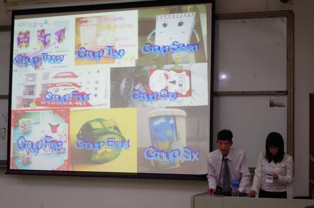 比赛现场,八位入围选手通过实物包装、PPT展示和原创广告视频等方式对各自的设计成果进行展示。在展示环节中,艺术学院徐鸿的治愈系列药品包装设计备受瞩目,可爱小熊和少女护士的药品包装成功吸引大家眼球,而PPT及原创的二次元动画也为他加分不少。许秋怡、吴嘉欣和谭佩君设计的益力多包装盒能吊挂8瓶益力多乳,顶端的手柄既方便顾客携带,更具有装饰的“二次利用”作用。此外,她们还自编自导自演了一段原创广告,琅琅上口的广告词“Mondayto Sunday,每天都在过Holiday”为她们带来高人气,最终凭借详细的产品设计理念和特别的色彩搭配夺得冠军。