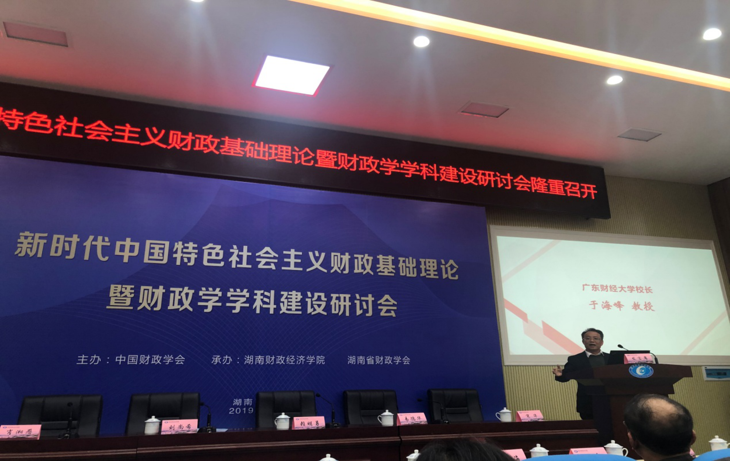我校校长于海峰教授应邀在大会上做了关于新时代财政的边界与范畴的主题演讲。他从狭义和广义两个方面探究了财政的范畴这一重要基础理论问题,认为狭义上的财政是指财政收入、财政支出和预算等范畴,而广义上的财政是指治国理政和政府履职的综合财务范畴,财政边界是一个动态的概念,在不同时期有不同的表现形式。他认为,要全面反映政府的整体财务状况、运行情况和财政中长期可持续性,应当按照党的十八届三中全会的要求和预算法的规定,加快建立以权责发生制为基础、按年度编制的政府综合财务报告制度。