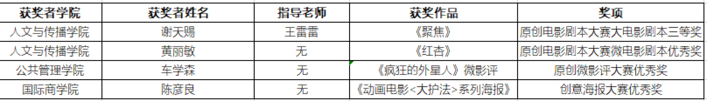 我校学生获奖列表