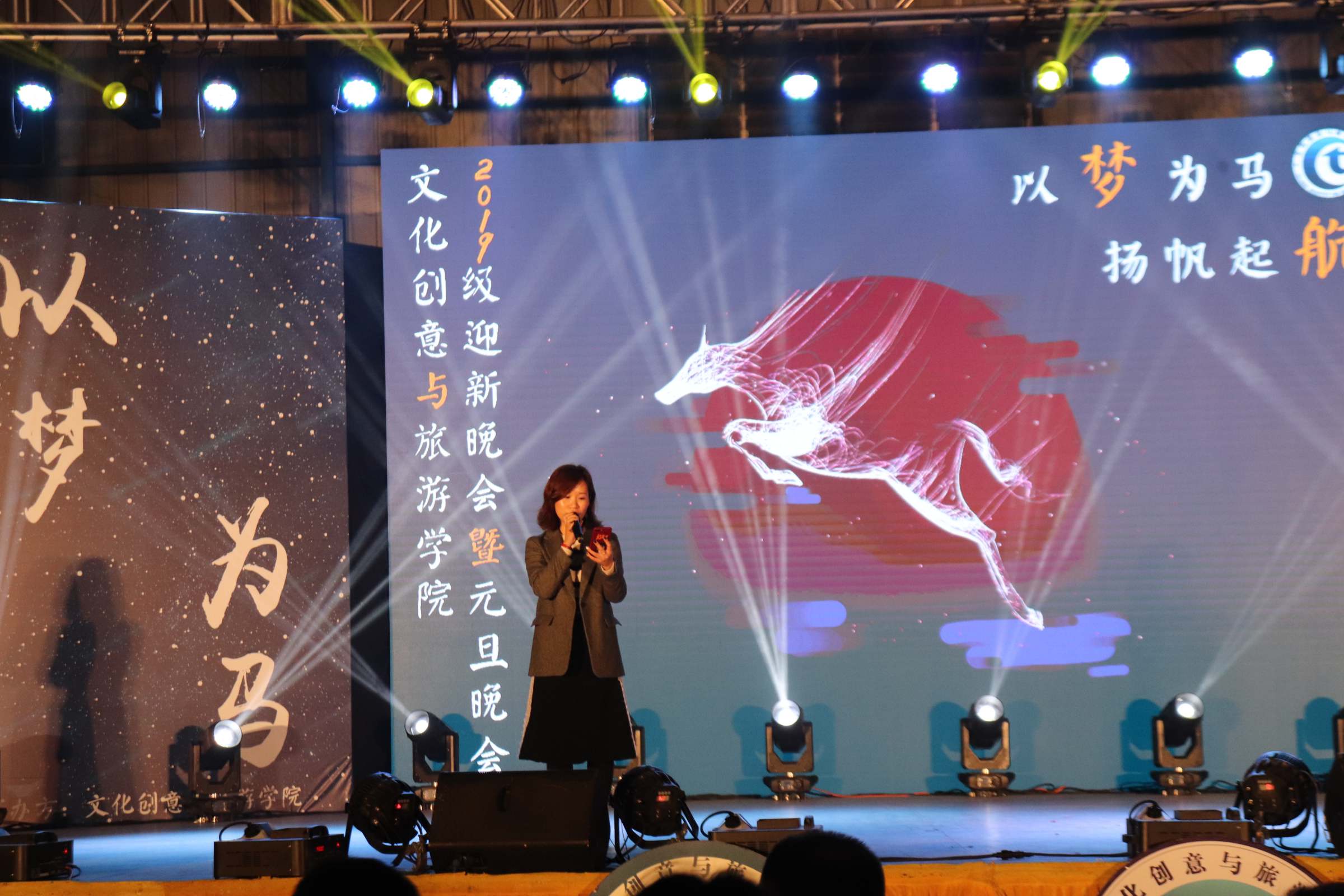 12月24日晚,文化创意与旅游学院2019级迎新晚会暨元旦晚会在佛山三水校区风雨球场举行,晚会的主题是“以梦为马,扬帆起航”。校区相关部门、各院系、校企合作单位的企业领导,文创学院全体师生出席晚会。。