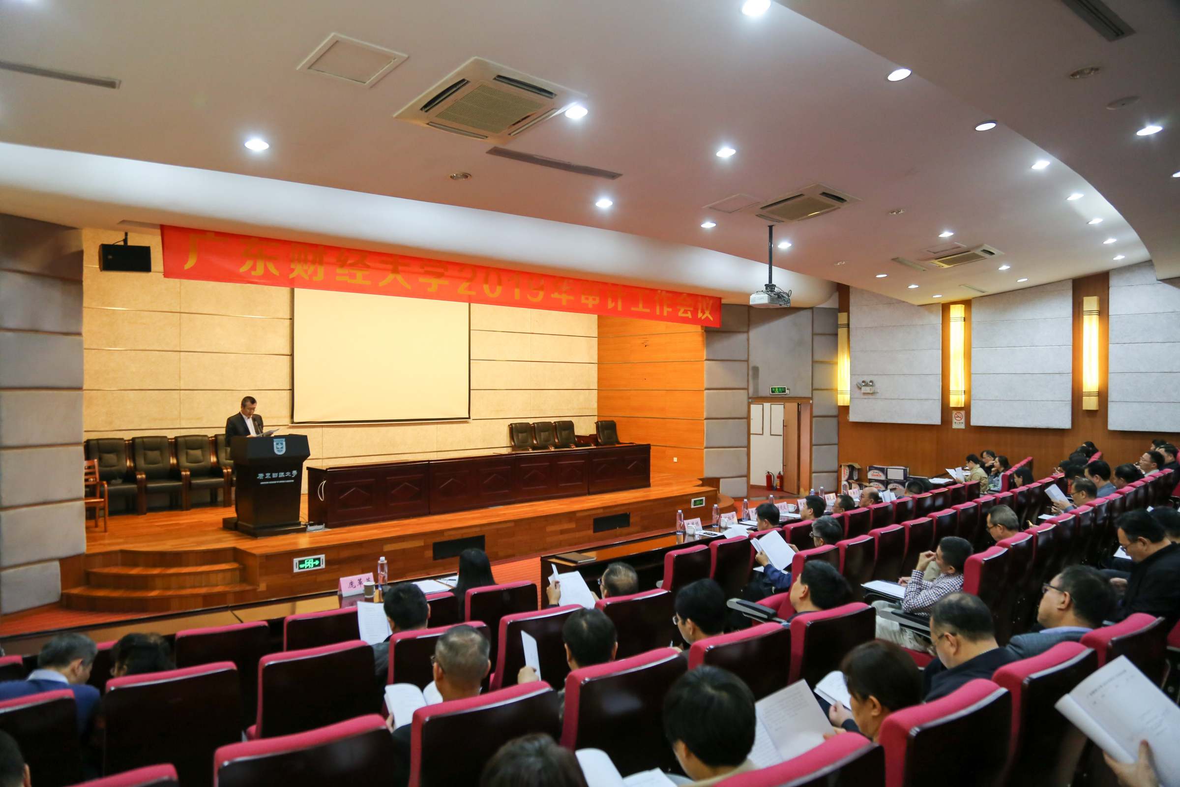 为了贯彻落实党和国家对审计工作的要求,开创审计工作新局面,推动学校建设有特色高水平财经大学,12月26日下午,学校在综合楼408召开了2019年审计工作会议。校党委书记黄晓波,校长于海峰,党委副书记、纪委书记陈树武,党委副书记刘祖华,副校长杜承铭、陈国栋、邹新月,党政管理、群团、教辅、附属单位中层干部,二级院部党政主要负责人,科研机构主要负责人,纪委监察处、财务处、基建处、资产与实验室管理处、采购中心、后勤处各科科长,三水校区党政办行政科科长、资产办科长、后勤办科长以及各二级院部办公室主任等200余人参加了会议。陈树武主持会议。