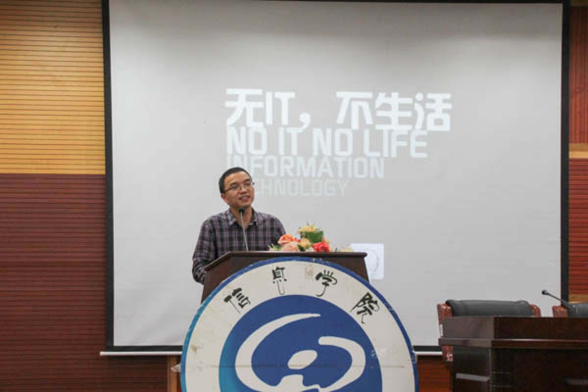 广州砺锋信息科技有限公司创业导师陈杨昆、广州慧麟信息技术有限公司董事吴勇和信息学院老师尹华先后演讲。陈杨昆以“无IT不生活”为主题,介绍了人工智能、VR/AR和云计算三个领域的发展趋势,并分析了当前企业APP的发展现状和存在的主要问题;吴勇则通过讲述了自己的成长经历,并向同学们分析了企业在用人方面的知识,幽默的语言赢得了观众的阵阵掌声;尹华则强调了学生解决问题能力的重要性,她以自己的经验告诫同学们要学会在实践中解决问题。