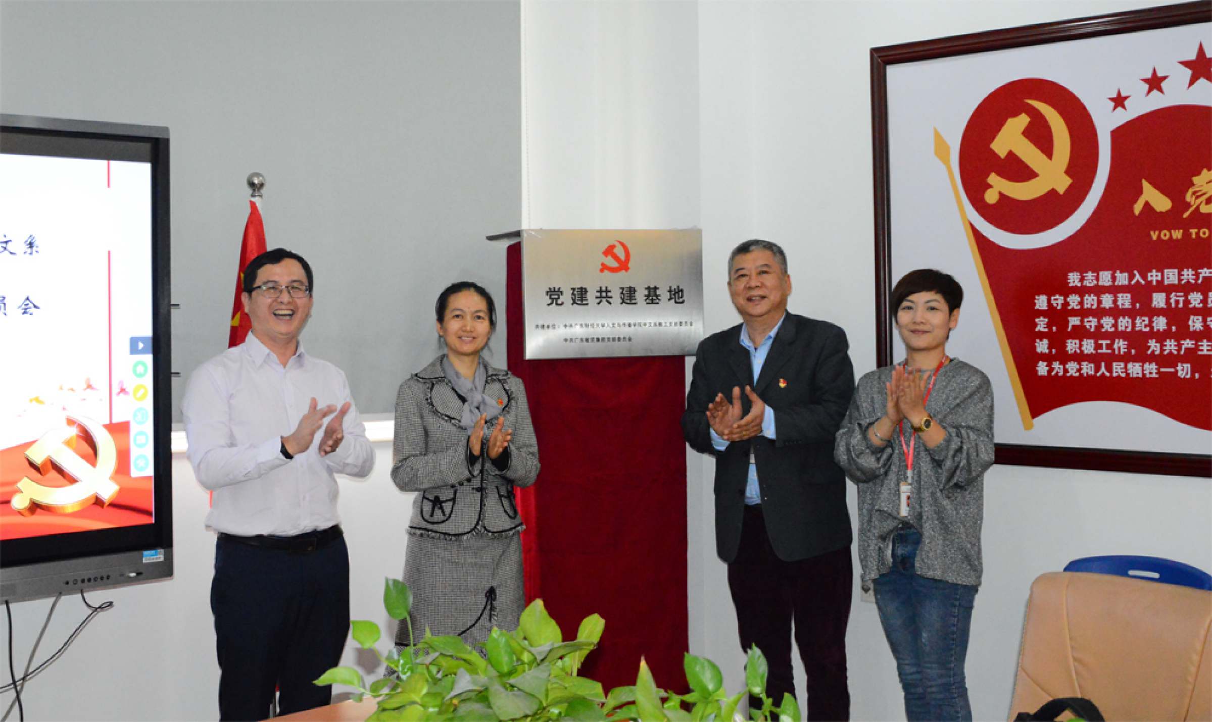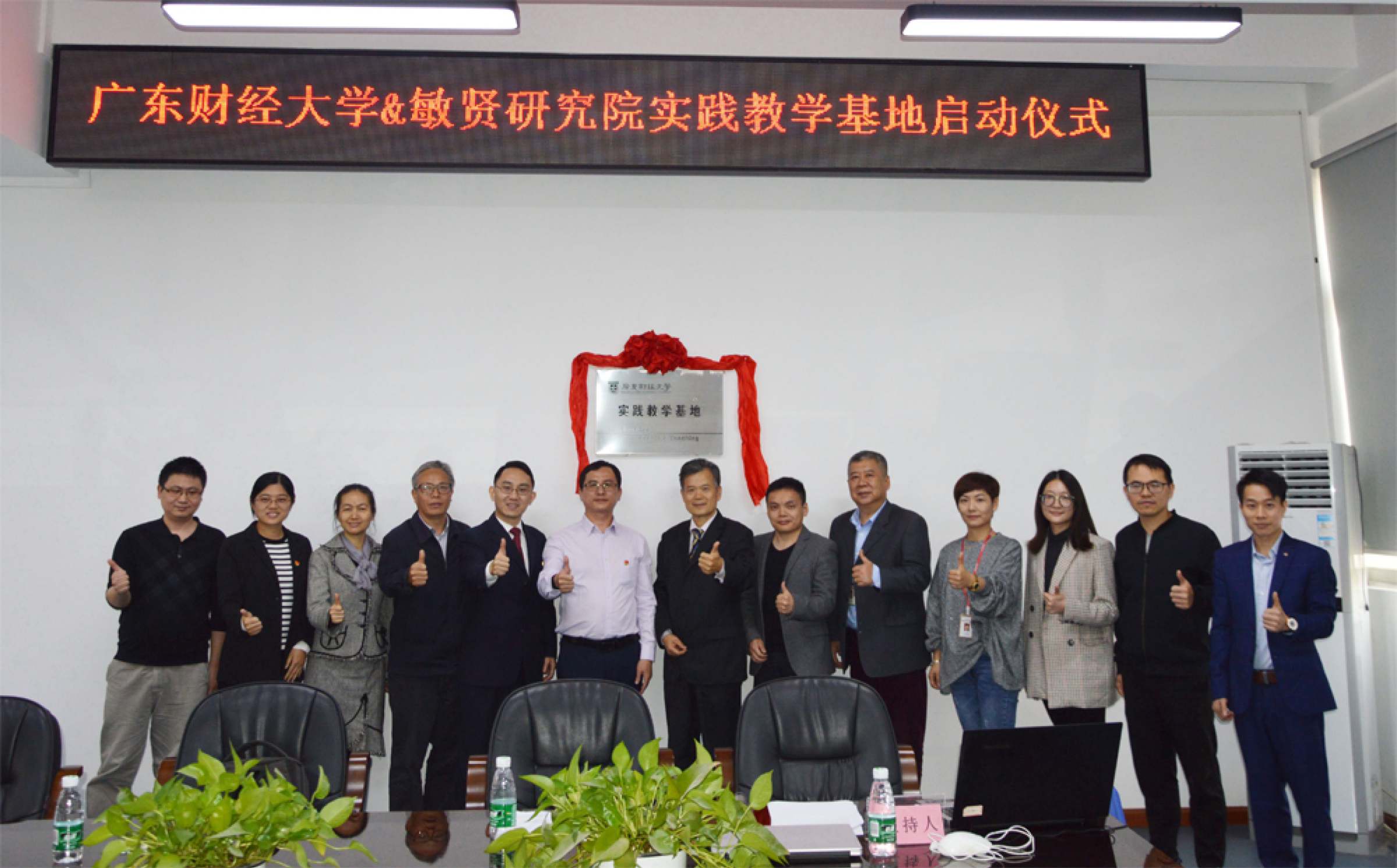 12月26日下午,广东财经大学人文与传播学院与广东敏贤集团开展校企“党建+”产学研共建合作系列活动,启动仪式在广东敏贤集团产业创新基地举行。本次活动主要包括“广东财经大学-广东敏贤新素质教育研究院实践教学基地揭牌、广东财经大学人文与传播学院中文系教工党支部与广东敏贤集团党支部共建签约与挂牌、双方的实践教学及党建共建的合作交流等三项内容。人文与传播学院党委书记苏明华及中文系主任许峰、教工党支部书记兼副主任胡玉兰、副主任李立林、教授傅明根及学生代表等,广东敏贤集团党支部书记罗尔刚、副董事长袁妙华及广东敏贤新素质教育研究院院长汪凤贤、执行院长赵辉等共30余人参加共建活动。广东敏贤集团董事长麦志敏参加了合作交流商谈等活动。