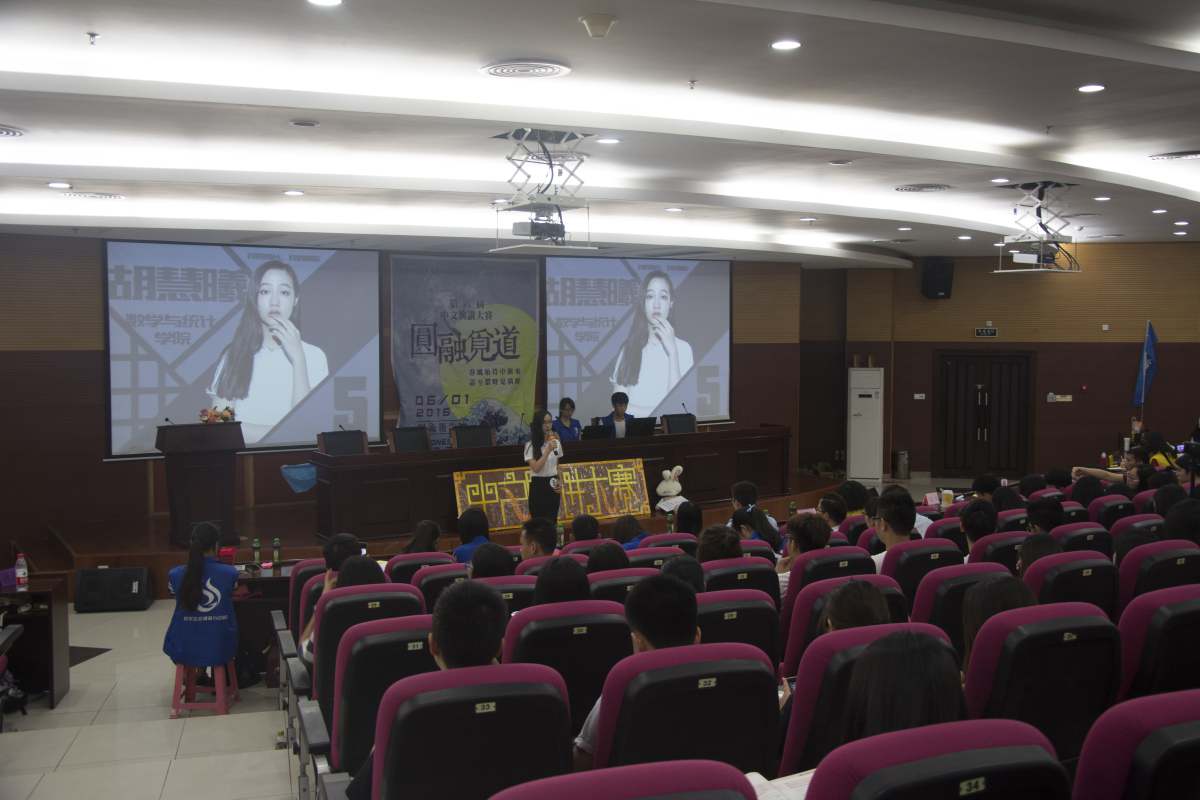 比赛分为常规演讲、正反面演讲以及即兴演讲三个环节。在常规演讲环节,10位演讲者以“圆融”为中心立意进行三分钟的演讲,讲述为人处世之道。演讲中,多数演讲者将“圆融”与“原则”相对应。公共管理学院的钟楚然、数学与统计学院的郭容辛都讲到要在圆融处世中做到不忘初心,即使“理想很丰满,现实很骨感”,也要坚守原则;经济贸易学院的周潇则以“圆融之下,原则当道”为主题,结合个人经历,犀利地指出当下大学生的“圆融”社交生活只是浮于表面,实则为“圆融”的歧途,并鼓励大学生把圆融和原则结合起来,保持初心;人文与传播学院的陈方君以“圆得了自己,容得了世界”作为演讲结束语,赢得阵阵掌声。