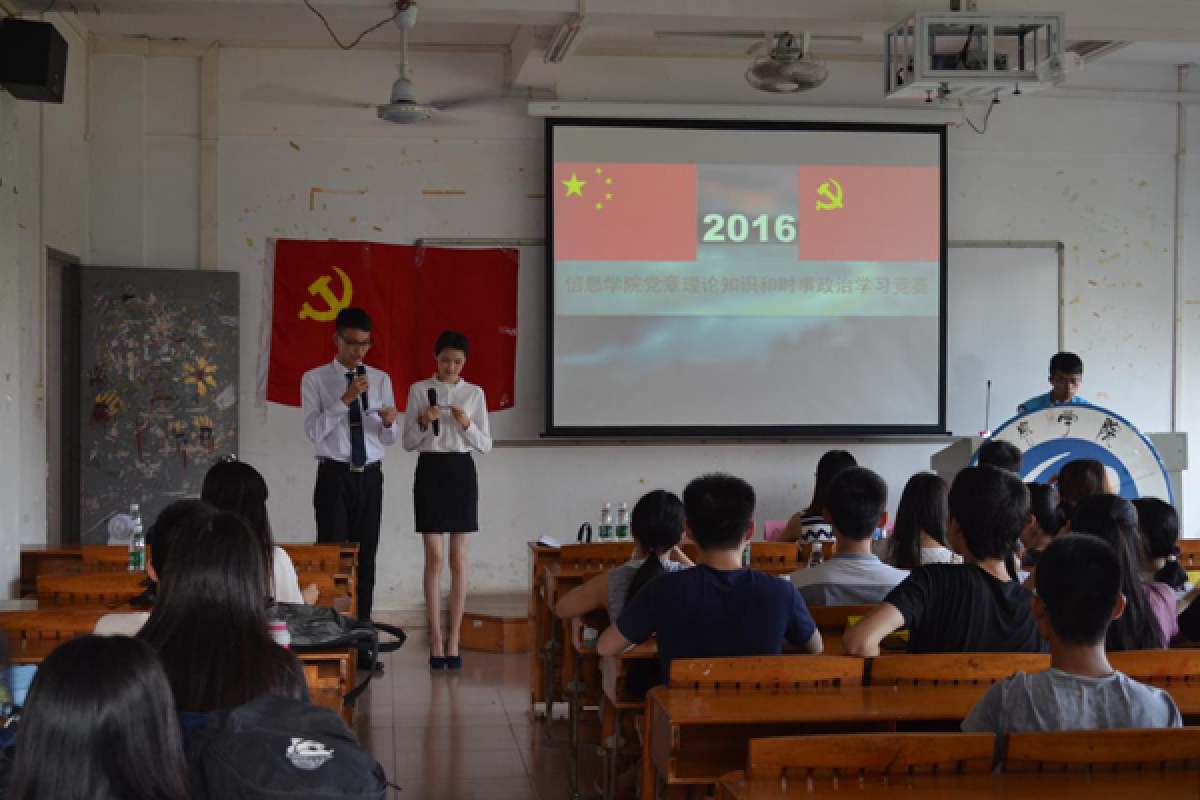 为更好地开展“两学一做”学习教育,加深同学们对党章理论知识与时事政治的学习与理解,信息学院于近期举办了党章理论知识和时事政治知识竞赛。6月1日,信息学院党章理论时事政治知识竞赛决赛于广州校区实验楼230举行。