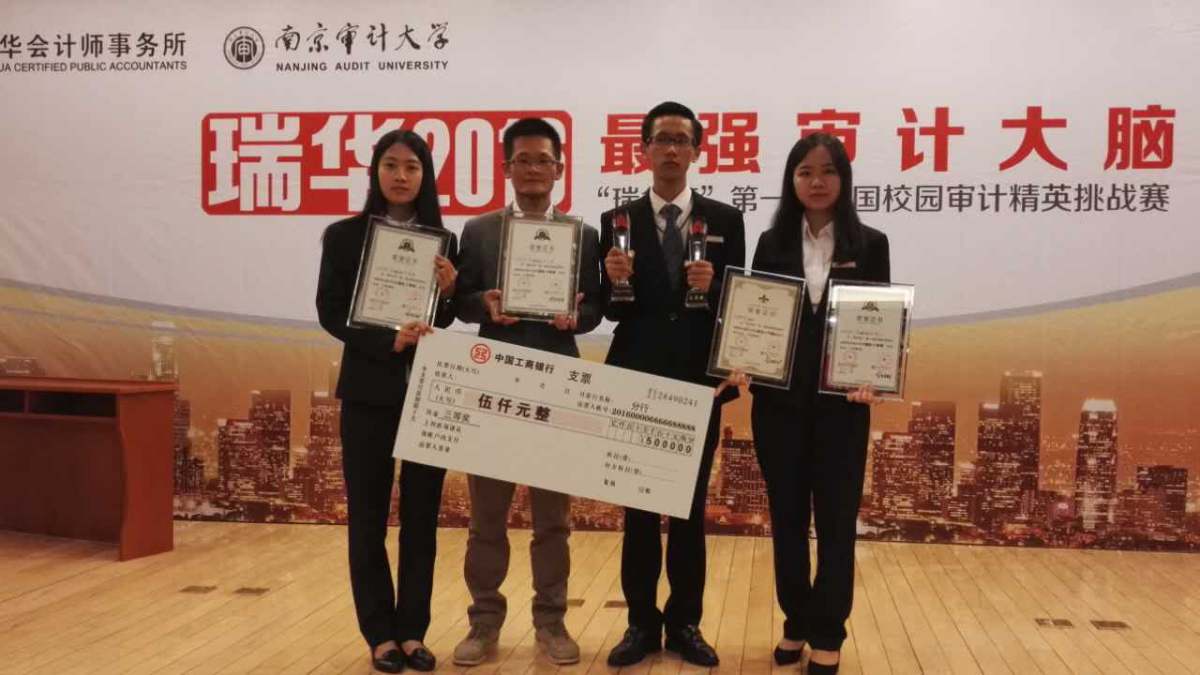 “瑞华杯”全国校园审计精英挑战赛是由瑞华会计师事务所与南京审计大学联合主办的全国性大型审计专业竞赛,共有来自全国450所高校的6000多名学生参加。区域复赛中,“铿锵三人行”团队技压中山大学、暨南大学、江西财经大学等高校代表队,以南部区域第一名的成绩晋级全国总决赛,与南京审计大学、中央财经大学等其他区域赛中的冠军队伍同台竞技。