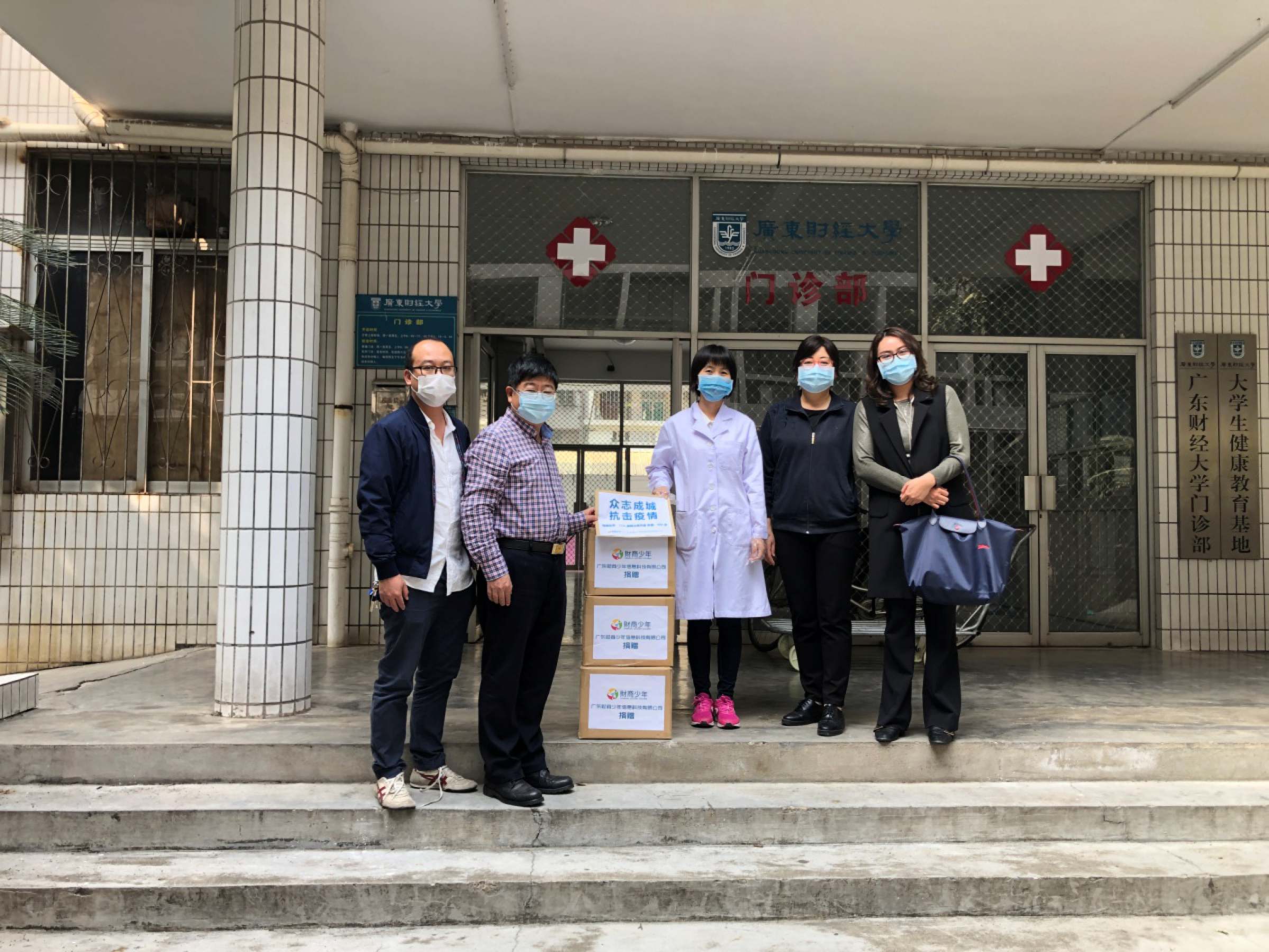 2月26日下午,MBA学院2018届校友梁伟涛一行,代表其公司——广东财商少年信息科技有限公司来校捐赠了600支75%酒精消毒喷雾给学校用于疫情防控工作,MBA学院院长李焕荣及校友办、医务室等同志代表学校接受这批防疫捐赠物资,并对广东财商少年信息科技有限公司的善举表示感谢。