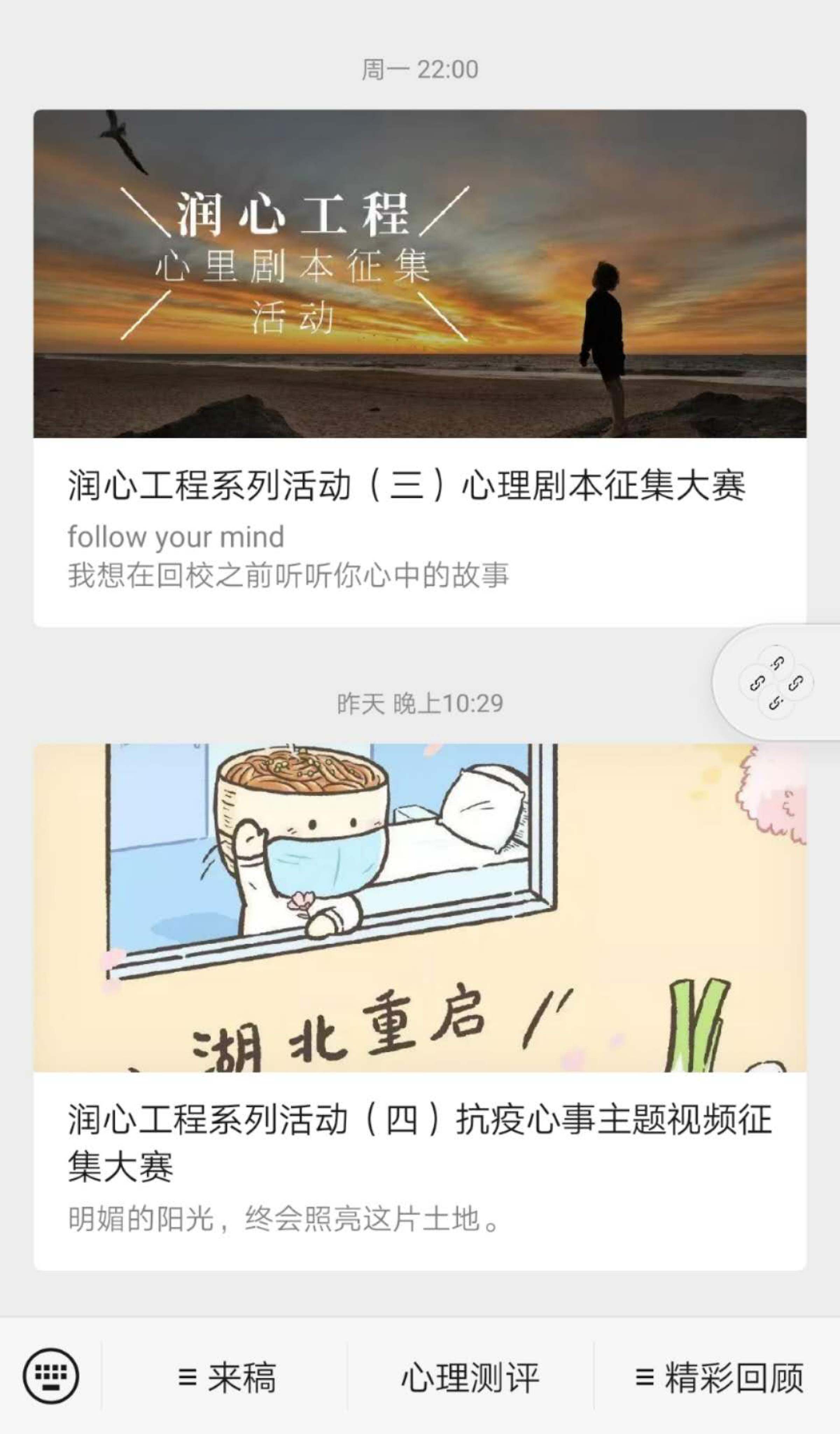 积极健康的心态是防控疫情的“心理口罩”。疫情期间,学生处围绕疫情期间学生的心理特征,开展“润心工程”系列线上心理健康教育活动。