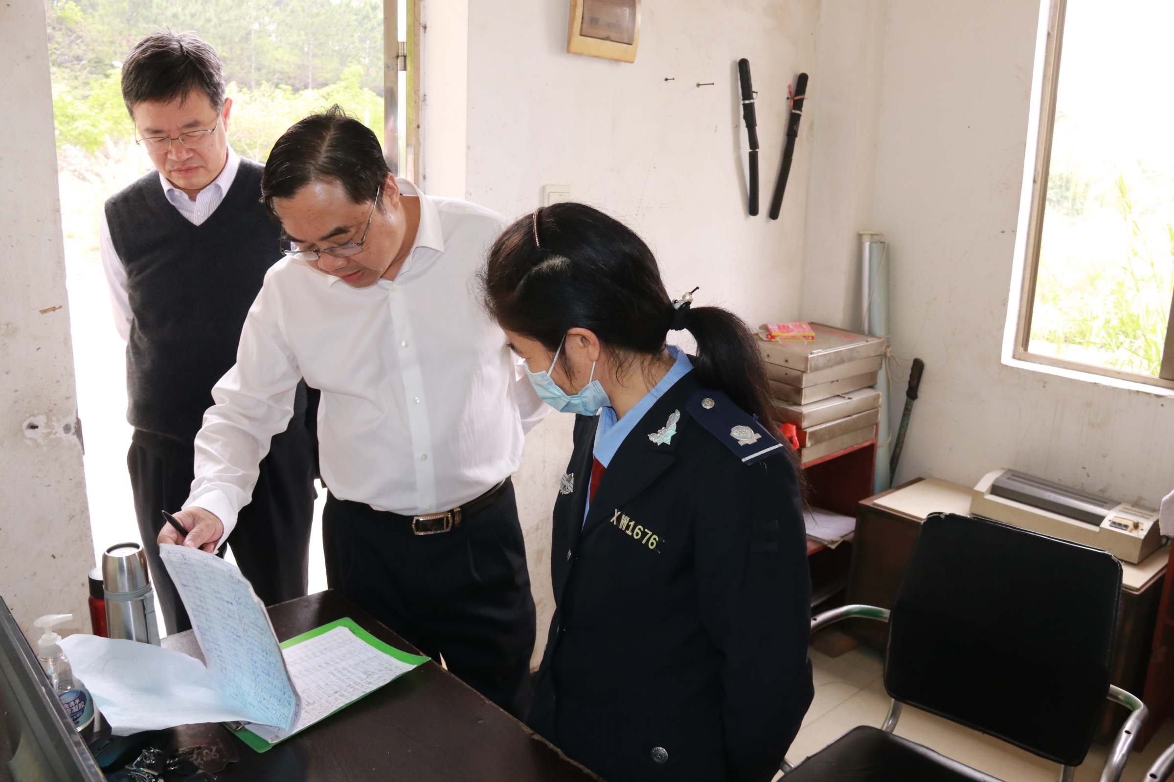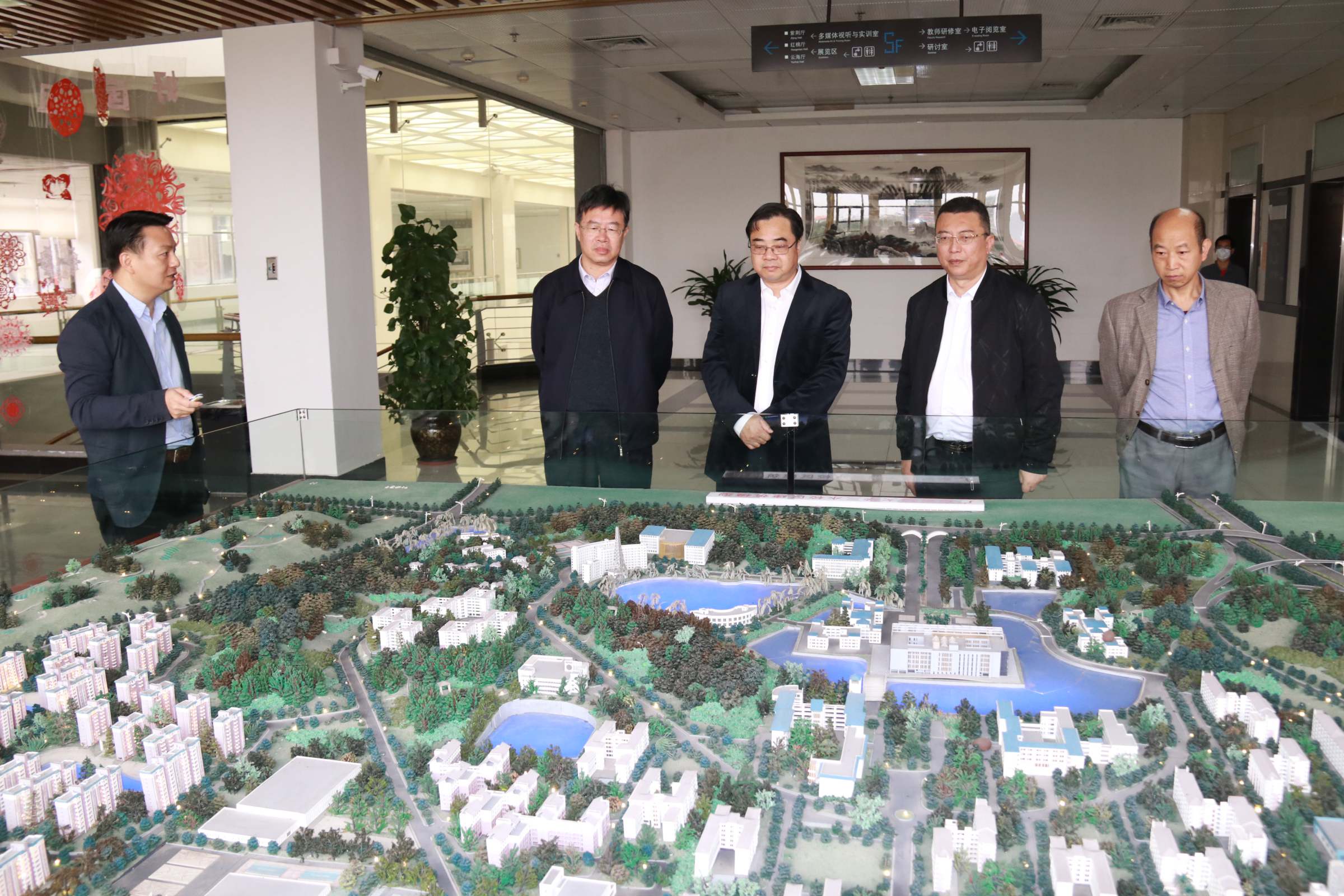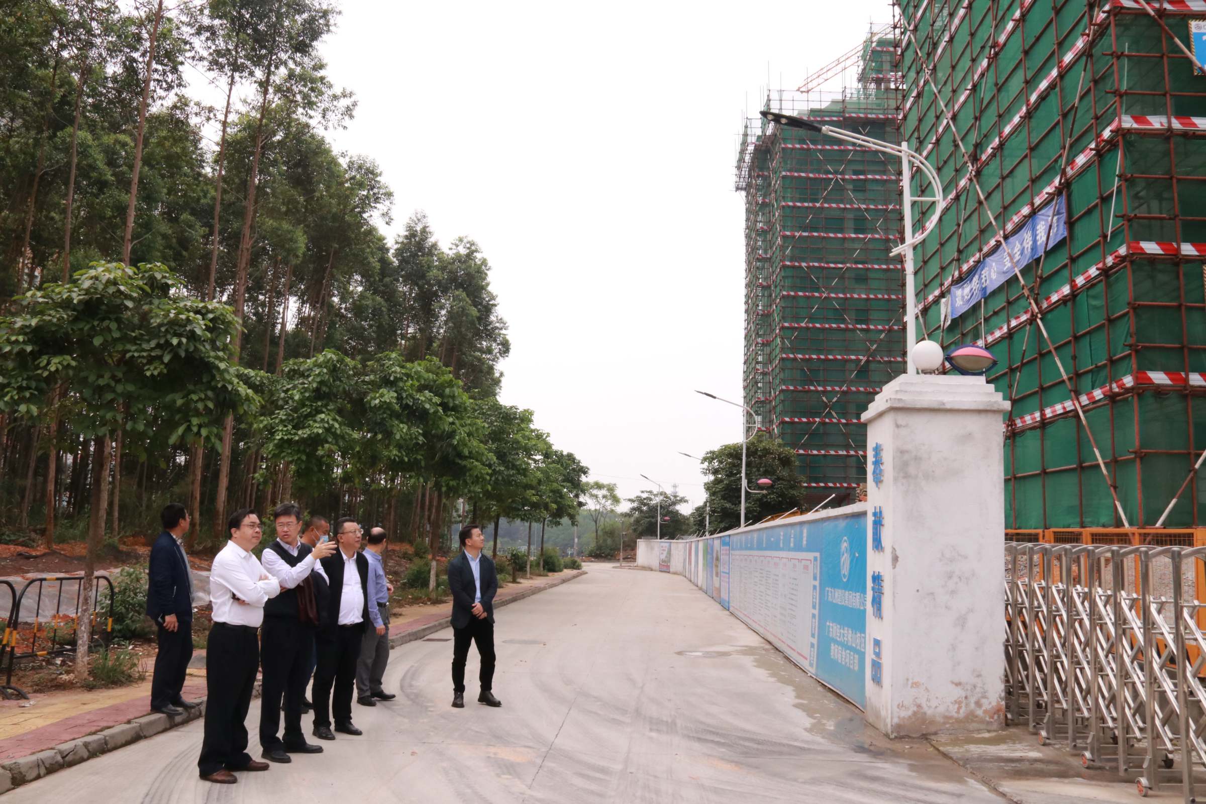 在上午的实地考察调研中,郑贤操一行深入校园每个地方,每到一处,都细致入微地调查研究。到图书馆,听取了校区图书馆建设情况汇报并查看了校区沙盘模型;到周转房,与职工住户交谈,关心职工工作和生活情况;到学生体育场馆,关心体育场馆建设与维护状况;到医务室,询问校区医疗服务和疫情防控工作开展情况;到学生社区,向社区管理员详细了解学生社区日常管理情况;到学生饭堂,了解职工就餐及饮食卫生工作开展情况;到值班点,详细查看值班记录;到佛山校区在建的各大建筑工地,了解工程进度及工人疫情防控工作。走访过程中,郑贤操在肯定校区工作取得的成效时,对工作不足之处也提出了指导意见。