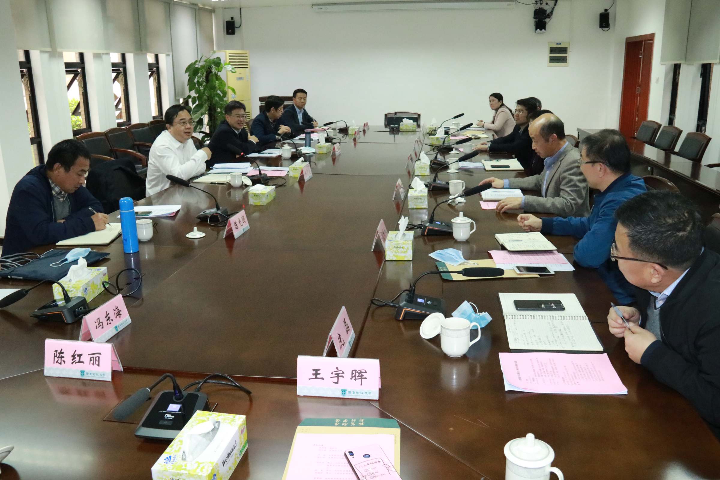 下午,郑贤操在校区第一会议室与党办校办、发展规划处(省市共建办)、校区管委会,国际商学院、文创学院、研究生院、佛山现代服务业研究院、税务干部进修学院等单位负责人座谈交流,陈国栋主持座谈会。