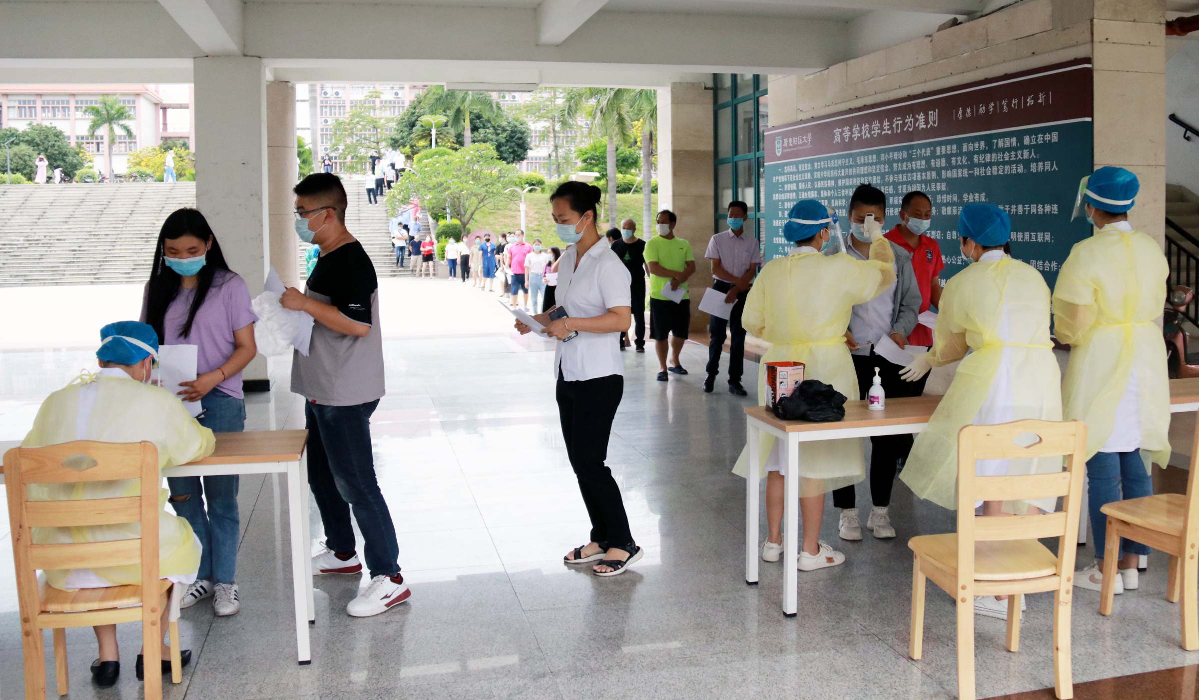 5月8日上午,佛山市三水区人民医院安排医护人员到佛山三水校区,对重点群体人员进行核酸检测。本次接受检测人员共162人,包括湖北返校教职工、校医、食堂人员、宿管、校车司机、保安等重点岗位人员以及辅导员等与学生接触比较密切人员,检测工作按照相关文件要求在校区第二教学楼有序进行。据了解,检测结果将在48小时内公布。