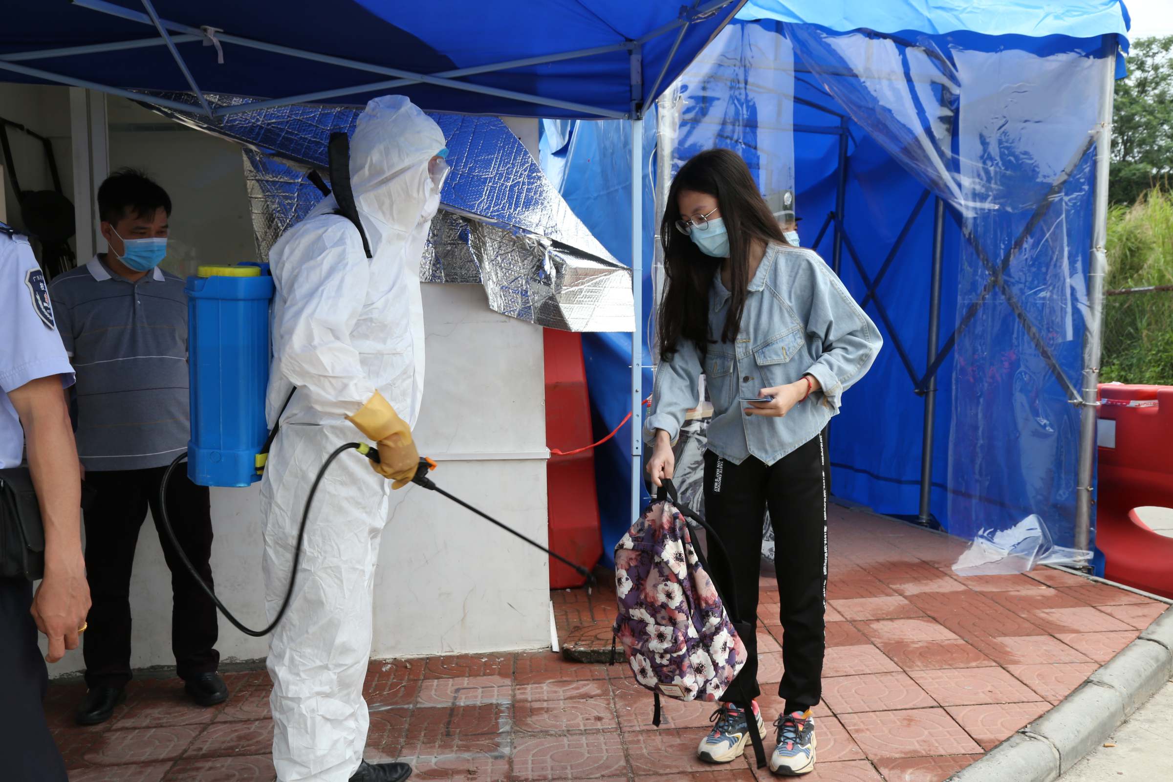 应急处置演练主要针对返校学生体温异常、证件不齐、未按规定时间返校等异常情况的应急处置,目的是进一步熟悉校园新冠肺炎疫情应急处置过程,严格执行返校日校门口“六分四查两消两确保”防控流程,全面提高疫情防范和应急处置能力,维护校园安全有序,守好学校防控第一关。