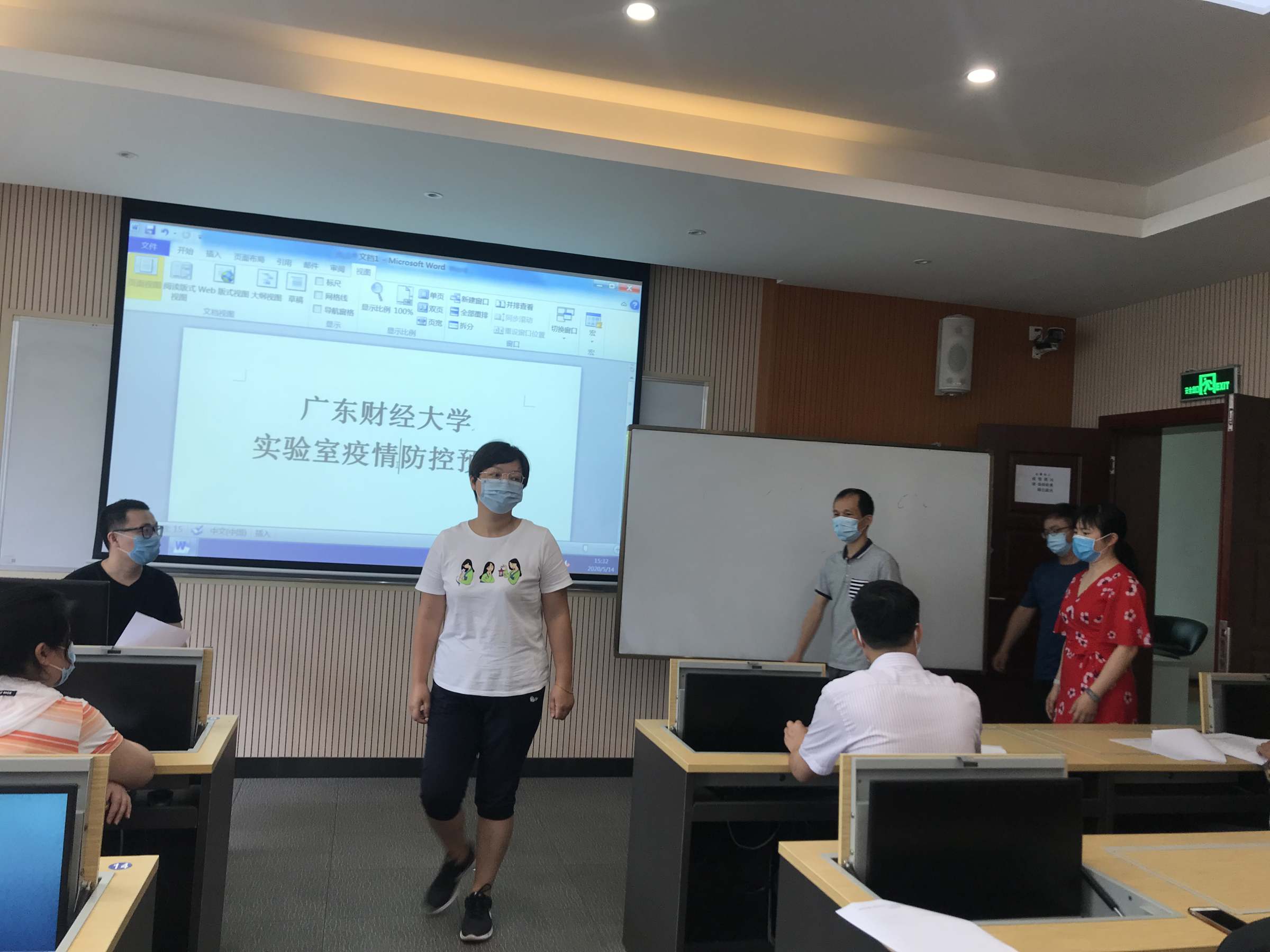 为扎实做好实验室疫情防控工作, 5月14日下午,学校在广州校区实验楼开展了实验室疫情防控演练,模拟师生到实验室上课时的防控管理与应急处置。资产与实验室管理处及各实验室管理员代表参加观摩演练。