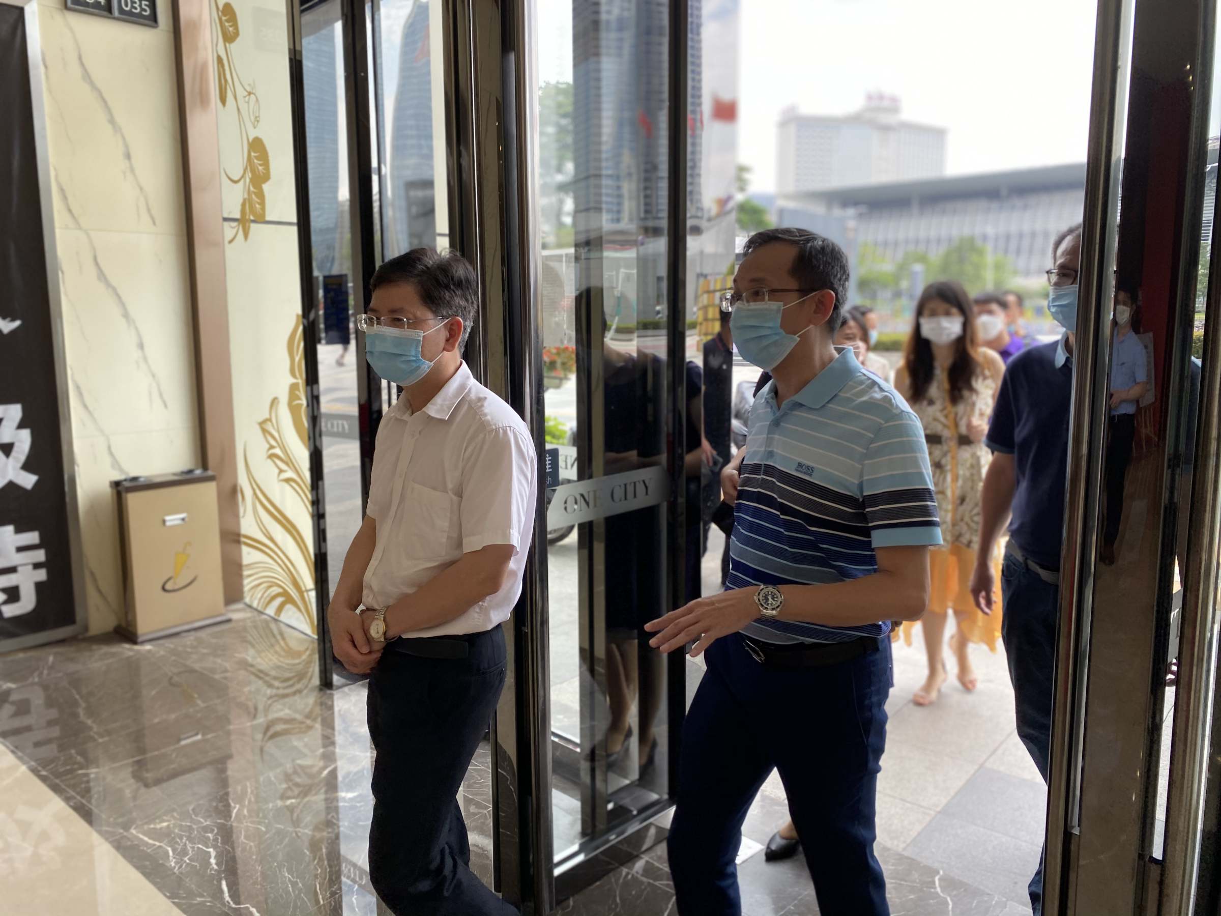 就业实习基地签约挂牌仪式结束后,罗贤甲等一行人员在海德集团副总裁莫鹏苏的带领下参观了海德集团。