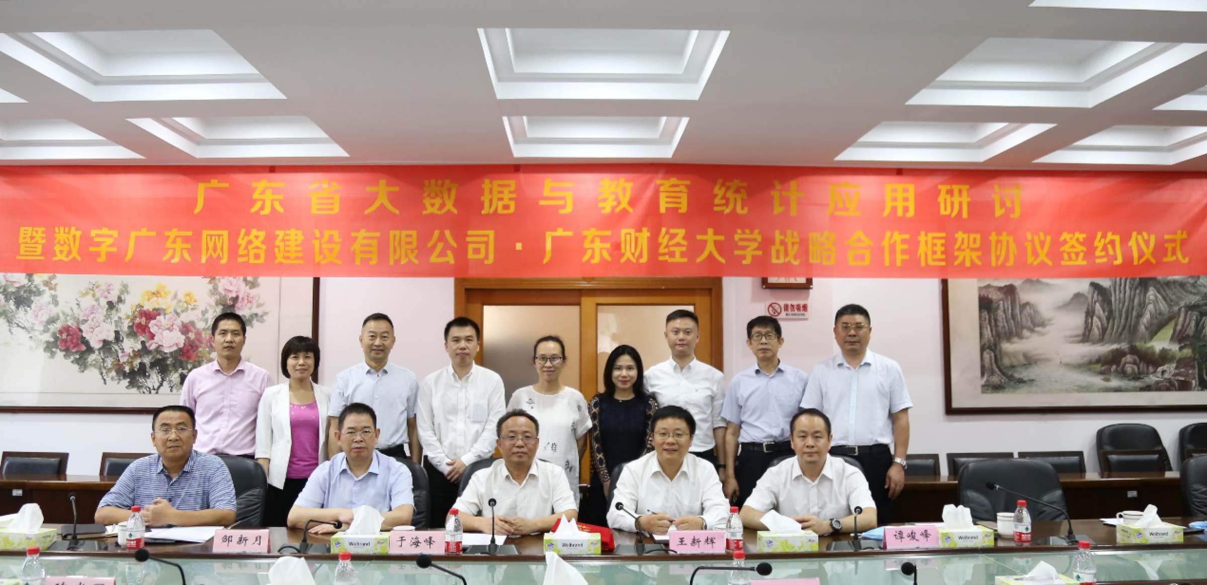 5月28日下午,广东省大数据与教育统计应用研讨暨数字广东网络建设有限公司·广东财经大学战略合作框架协议签约仪式在广州校区办公楼第一会议室举行。数字广东网络建设有限公司(以下简称:数字广东公司)首席执行官王新辉、联席首席技术官谭峻峰,校党委书记郑贤操、校长于海峰、副校长邹新月以及双方代表共10余人出席了签约仪式,省教育厅发展规划处相关同志参加了研讨活动。仪式和研讨由邹新月主持。
