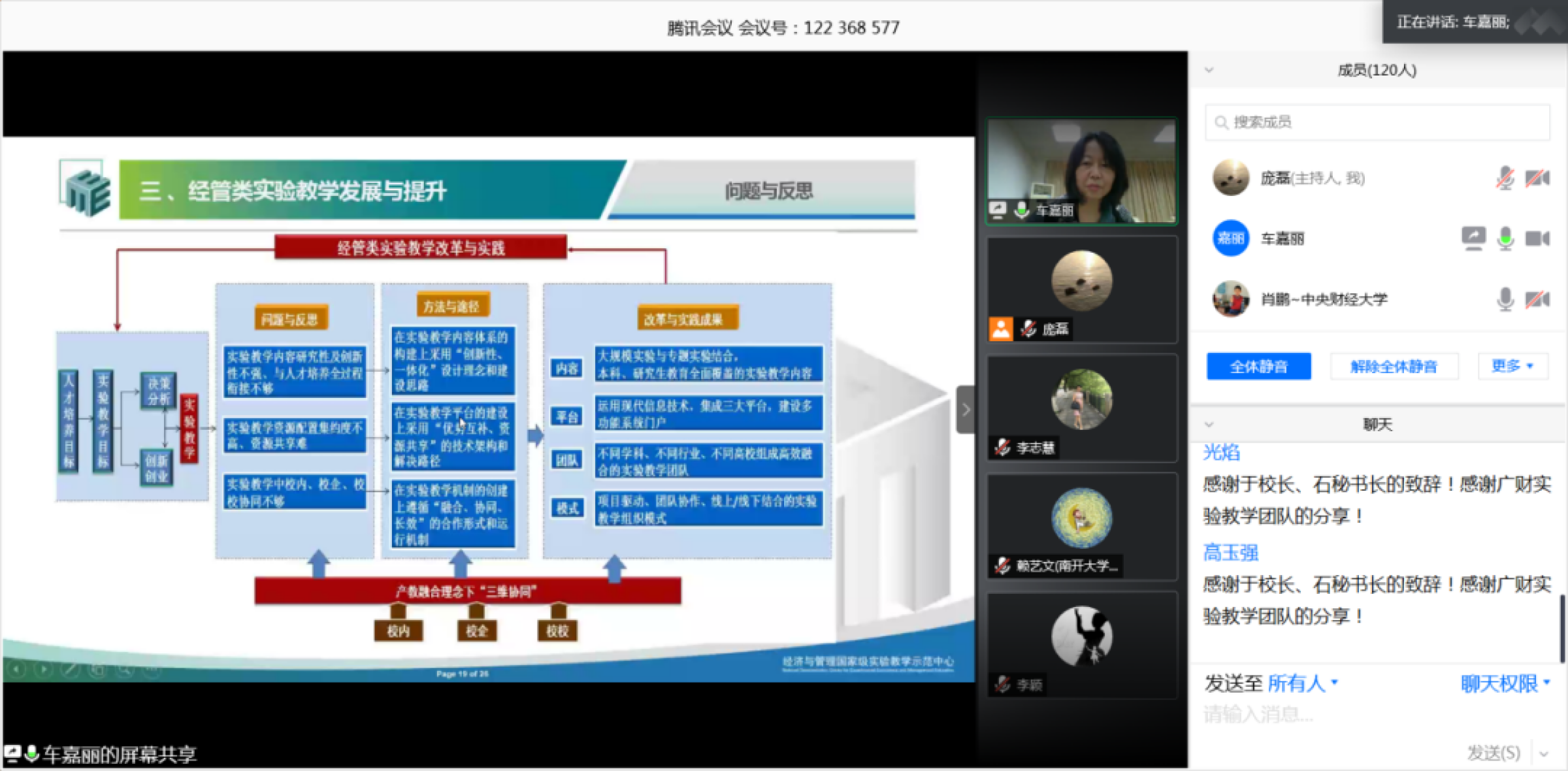 在总结环节,财税学院教授姚凤民对本次分享会进行总结。他对财政学教指委提供的实验教学分享平台表示感谢。他认为,结合“新商科”“一流课程”建设等做好财政学实验教学改革是新时代的发展方向。此次分享会有利于推进实验教学课程教学改革和方法创新、课程设计和教学研究,实现创业基地和专业一体化。
