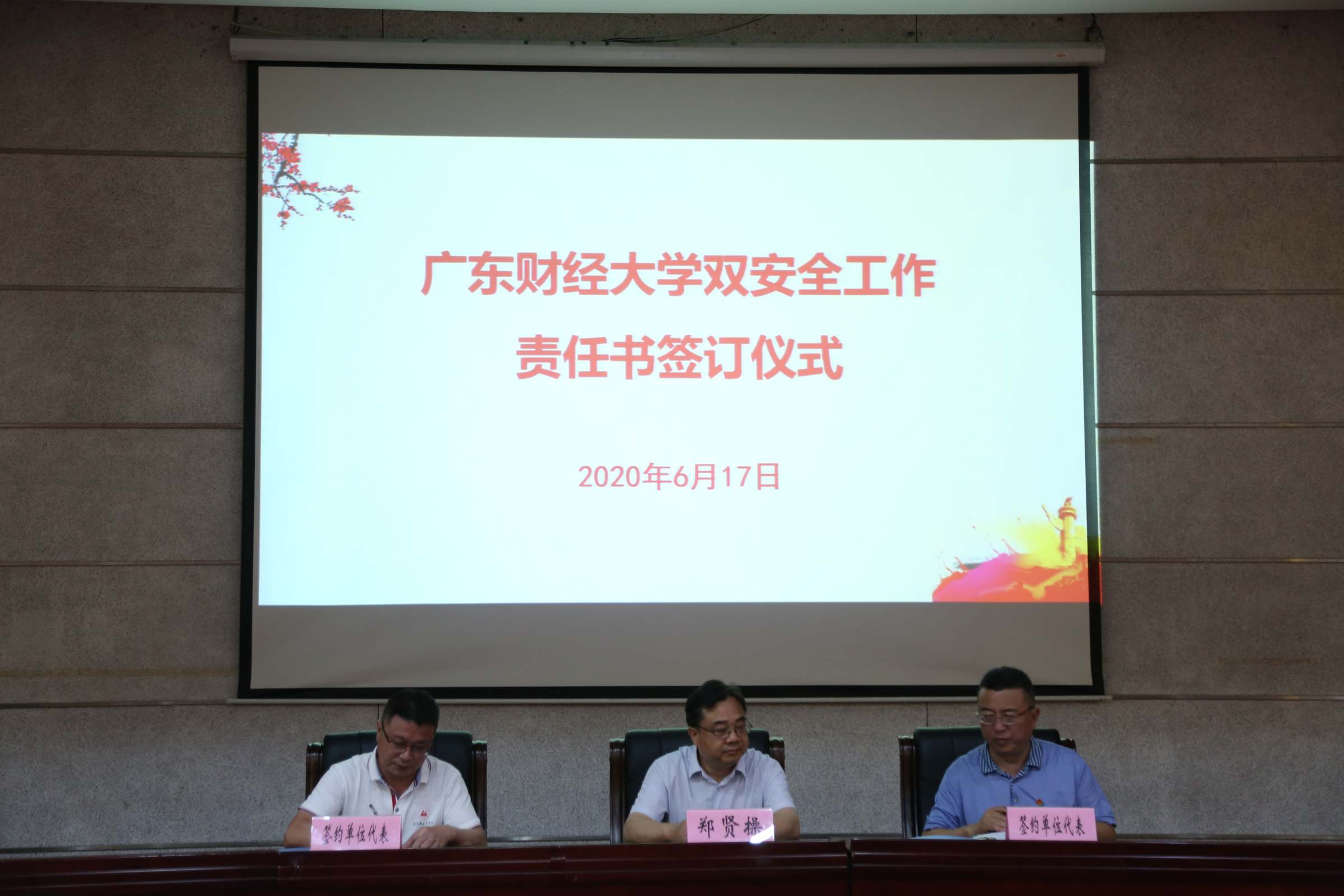 为全面落实安全工作责任制,确保安全工作落到实处、取得实效,6月17日上午,在广州校区综合楼408会议室,我校举行安全工作责任书签订仪式。学校安全工作领导小组成员、各单位负责人参会,校党委书记郑贤操代表学校党委与各责任部门签订了责任书。校党委副书记刘祖华主持了签订仪式。