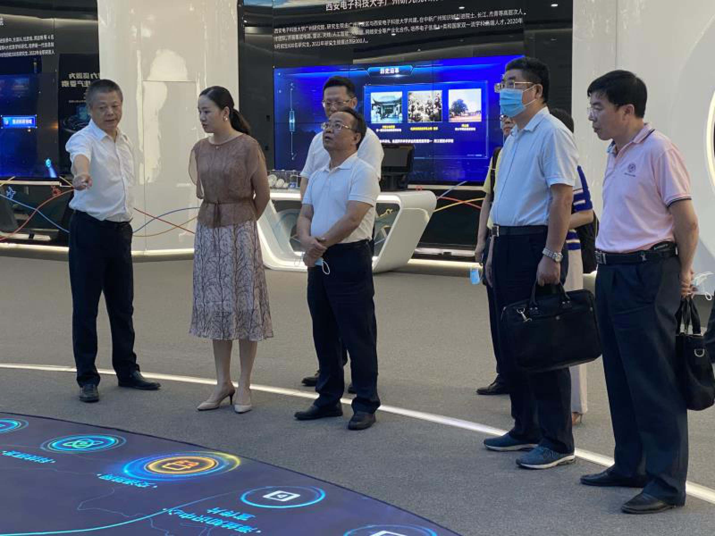 于海峰一行参观了海丝知识中心,并与知识城开发建设办副主任徐晖等座谈交流,深入了解知识城的人文地理环境、园区发展规划、政府扶持政策等情况,双方就合作共建大湾区数字经济与科技金融未来技术学院(大湾区商学院)初步达成共识。